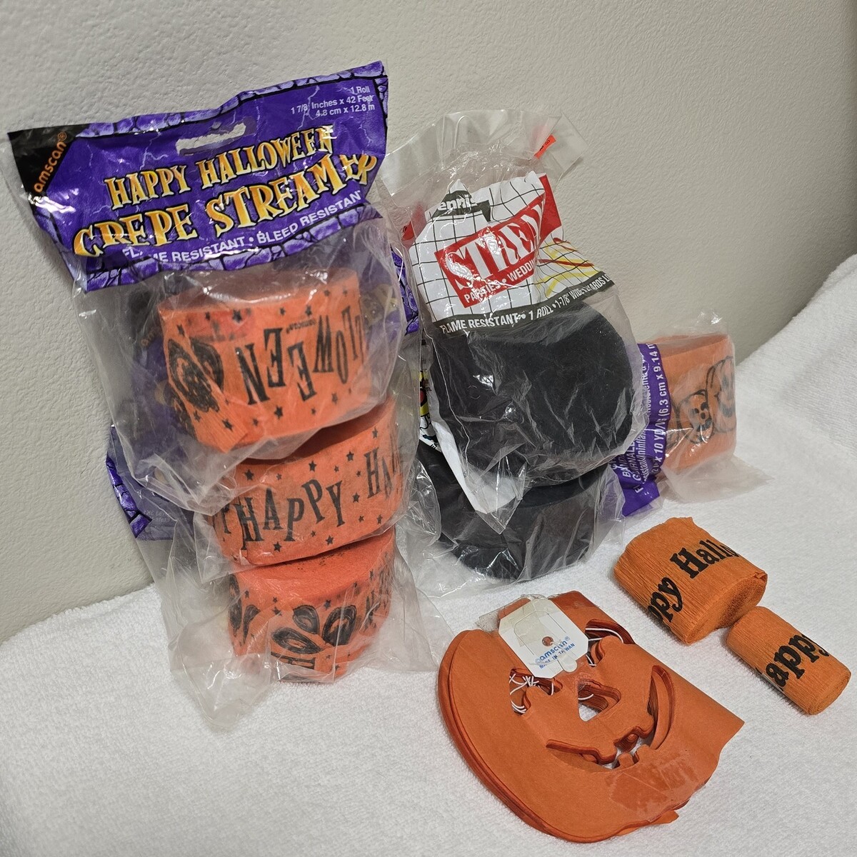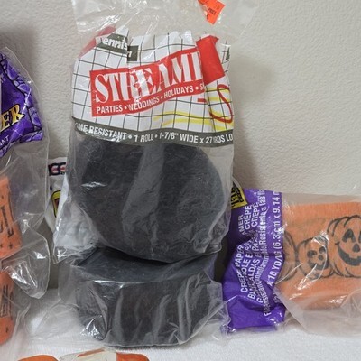 ***There are 2 partial rolls. 1 of the black rolls is opened but new. And there are some Amscan paper pumpkin decorations that I'm just throwing in. Please See Photos!***