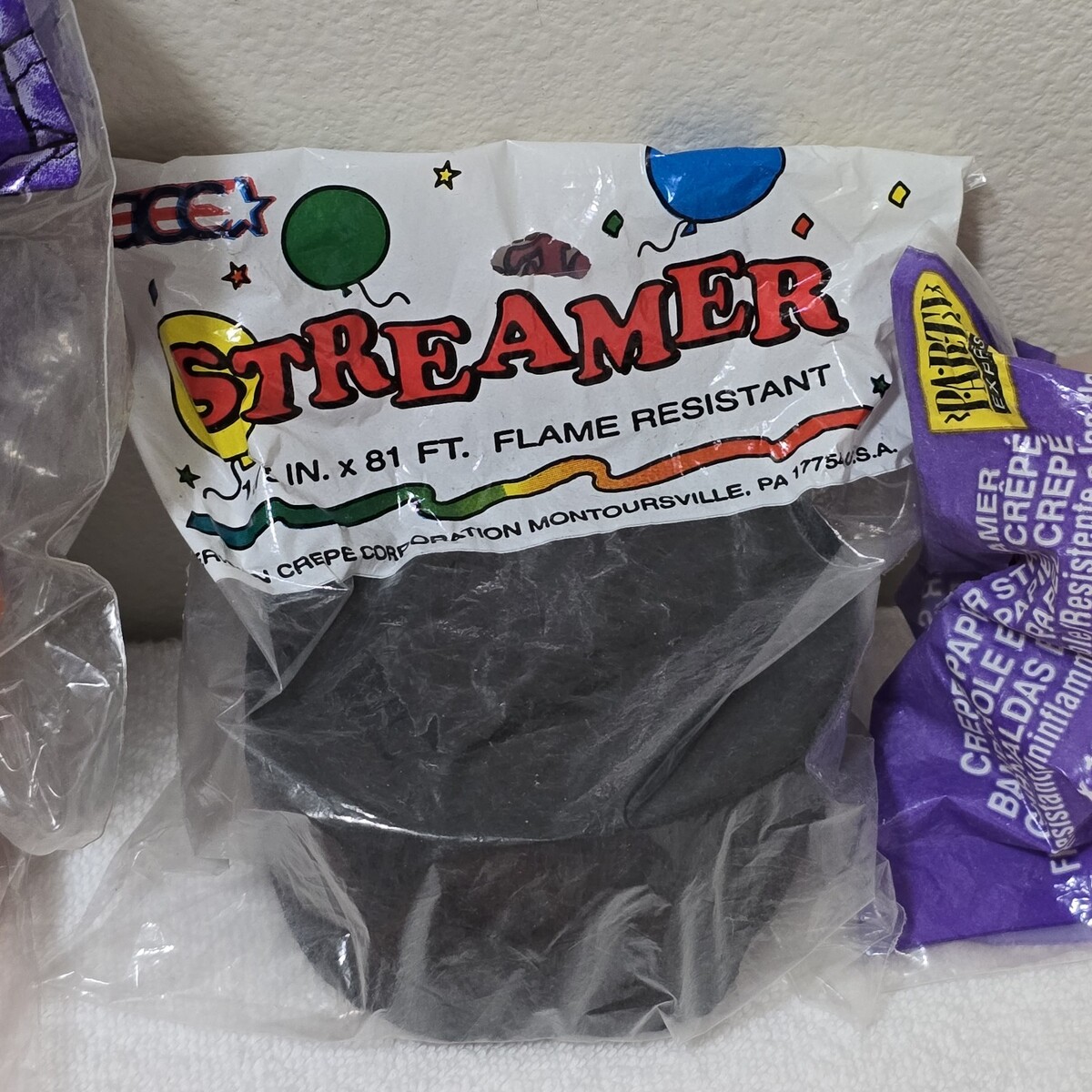 Vintage Halloween Crepe Paper Streamer Black / Orange Jack of Lanterns Lot Of 6 + Rolls