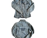 - VTG Harley Davidson Women’s Biker Blues Jean Jacket Sz M Embroidered Tribal Pins