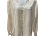 - VTG Kathy Che Blouse SZ 16/18 Ivory Pearl Beads Embroidery Long Sleeve lace