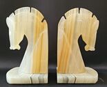 VTG Knight Trojan Horse Head Large Carved Onyx Marble Stone Bookend Set Book End