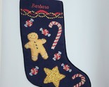 - VTG LANDS END Wool Needlepoint Christmas Stocking Gingerbread Man Candy Canes