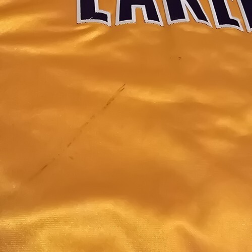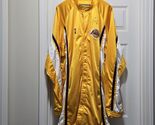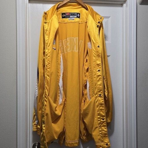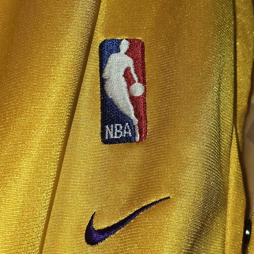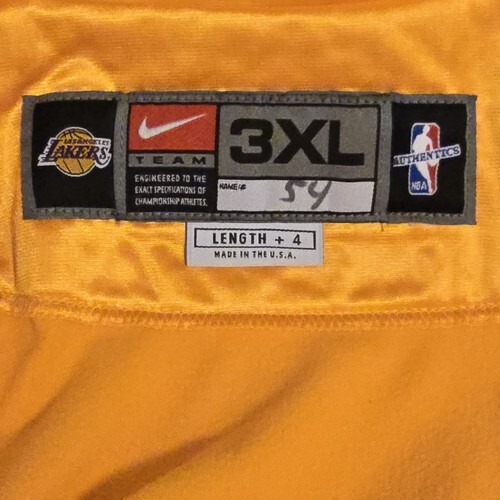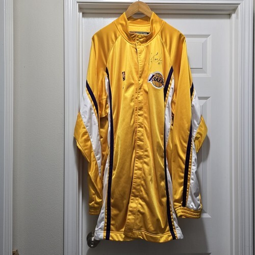 Rare Vintage Los Angeles Lakers Nike Team Issue 1999 - 2001 Button up Gold Warm Up Jacket - Signed by #11 Coby Karl. Men's 3XL + 4" Length. Actual measurements: 60" chest, 38" length.