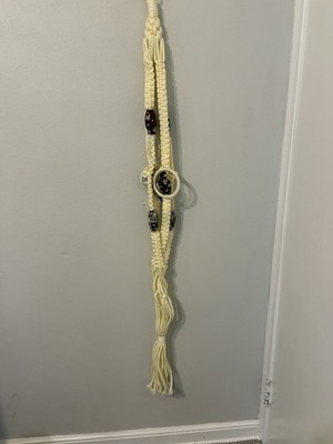 VTG Macrame Plant Hanger with Ceramic Parrots 1970s Cream Cord 50"