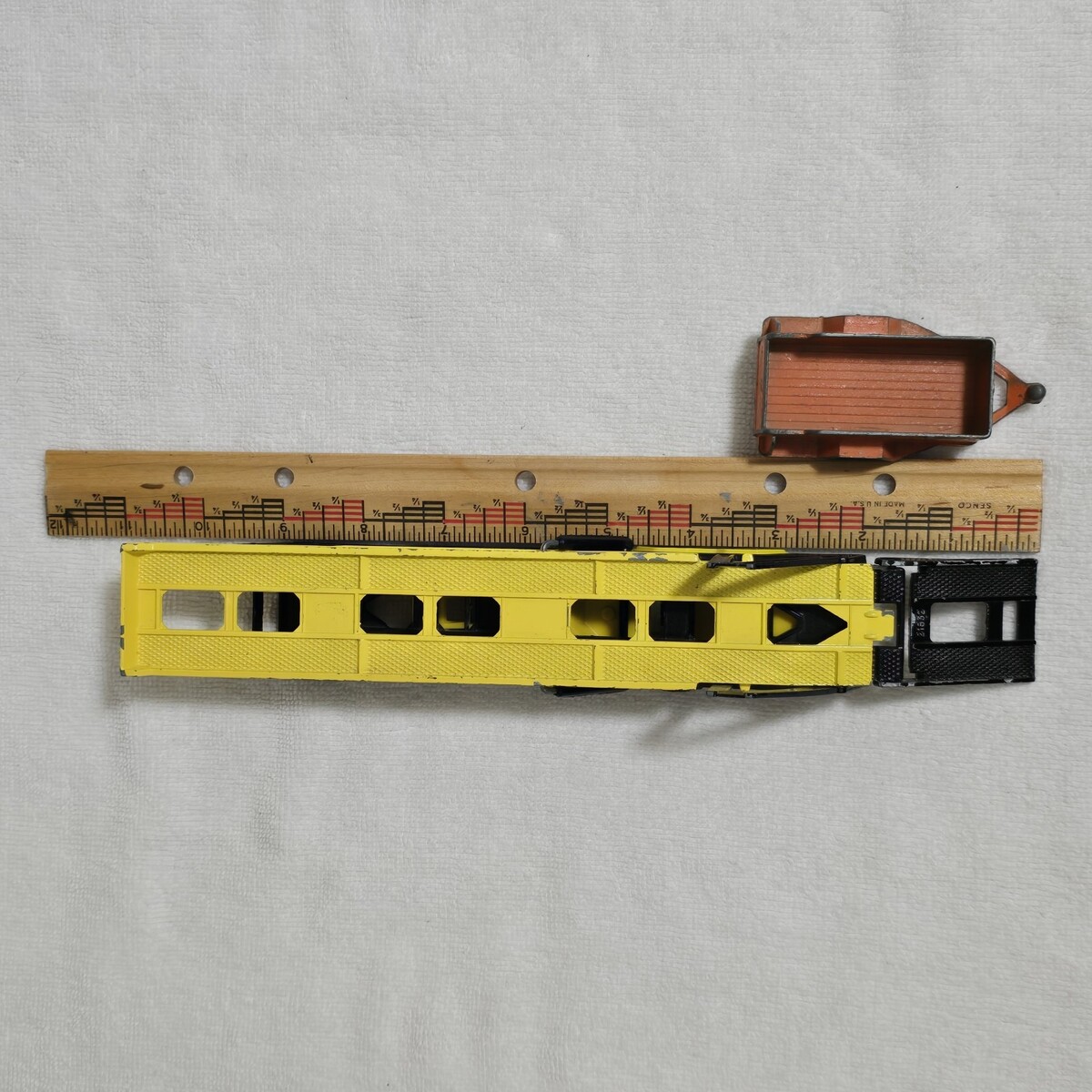 Tootsietoy trailer measures approximately 3 OE inches long by 1 oe inches wide