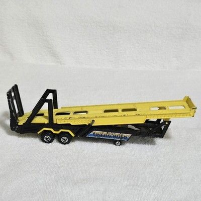 ***Comes exactly as pictured. The Majorette transporter has moderate paint wear, surface scuffing, and wear to the "Transauto" decal. The rear ramp is intact and functions. The Tootsietoy trailer shows visible edge wear and decal loss on the U-Haul logo. Both roll freely and display well.