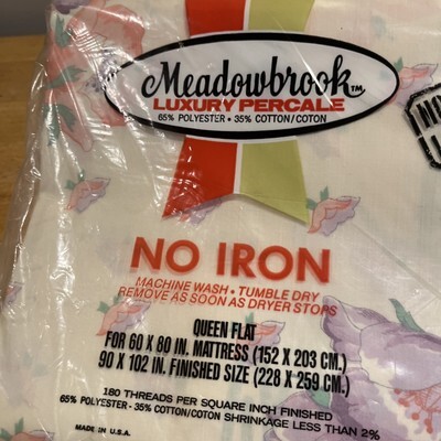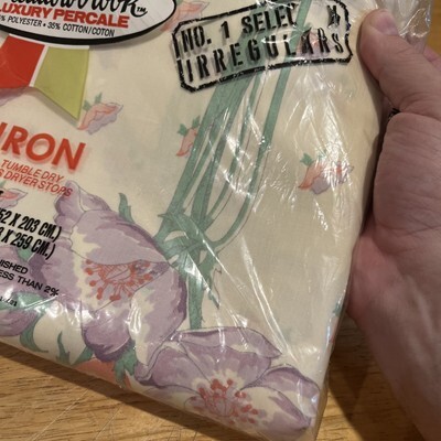 - VTG Meadowbrook Irregular Queen Flat Sheet Pink Flower Purple NOS Percale MCM