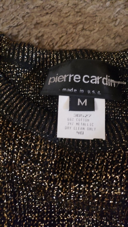 VTG NEW Deadstock 1970's 80's Women's Pierre Cardin Top Blouse Brown Gold Metallic S This is nice Cocktail/Special occasion Top. Straight out of the 90's/80's!! Literally. We got this from seized storage unit that had not been opened since 1991. Everything in this is older and from rich single lady This may be a bit musty and may need washing. NOTE - this has shoulder pads (as all fancy tops from 80's do) Measurements - 17-18 inches across the chest (armpit to armpit) 8 armpit to end of sleeve 21-22 inches total length long FREE SHIP