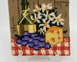 VTG Needlepoint Crosstitch Embroidery Wine Cheese Grapes 5x5” Cottage Core