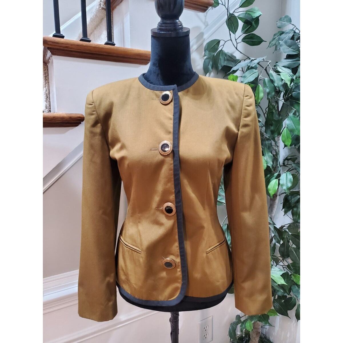 Vintage Oleg Cassini Women Brown Polyester Single Breasted Long Sleeve Casual Jacket 8.