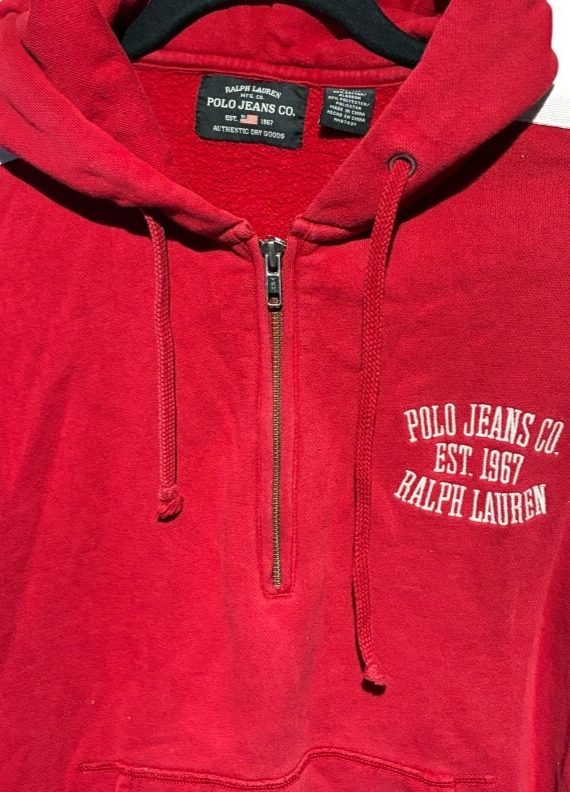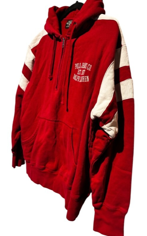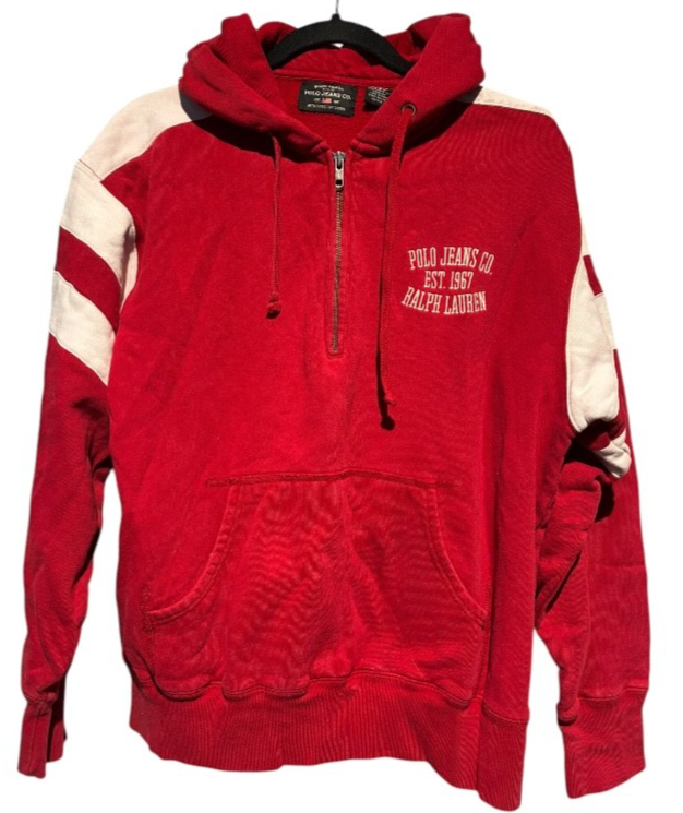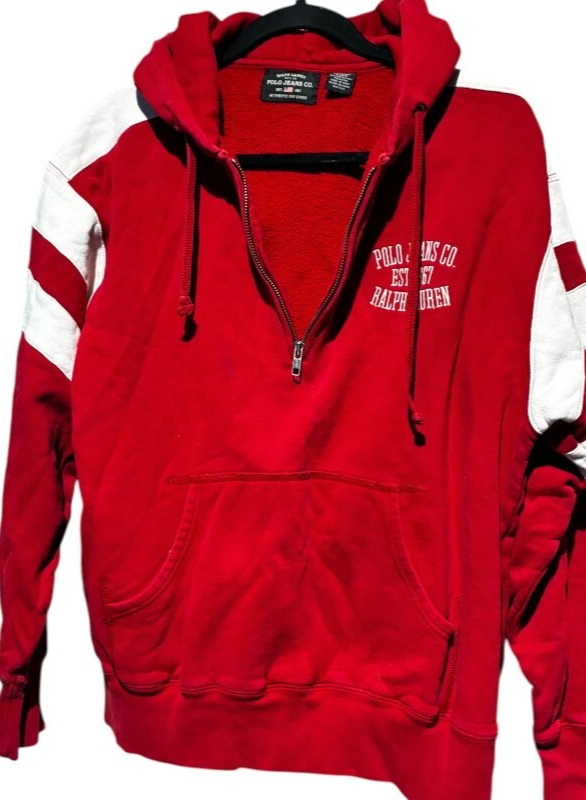 - VTG Polo Jeans Co Ralph Lauren Mens 1/4 Zip Hooded Sweatshirt Red size M