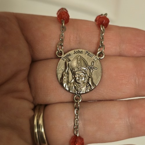 - VTG Pope John Paul II Commemorative Rosary Crucifix Red Plastic Beads 20.5” Bag