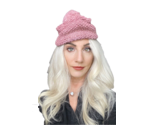 Pretty 1940?S vintage hand-knitted dusty rose pink metallic knit hat with a pompom in a seed stitch pattern that is 4? high and measures 21? around the inside edge, which is a small head size. Excellent condition.