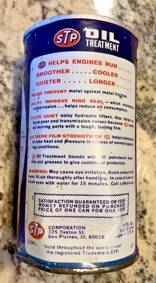 This vintage STP oil treatment can is a collector's item for any gas and oil enthusiast.
