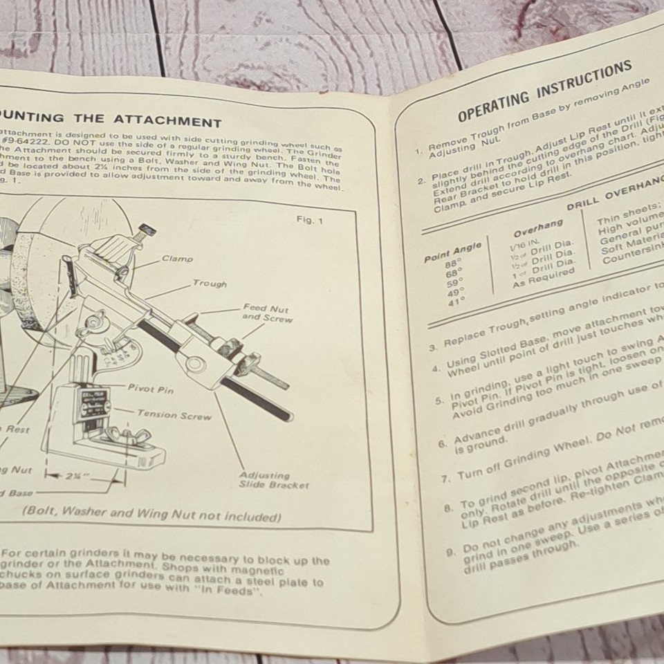 - VTG Sears Craftsman Drill Bit Grinding Attachment 96677 Original Box Manual