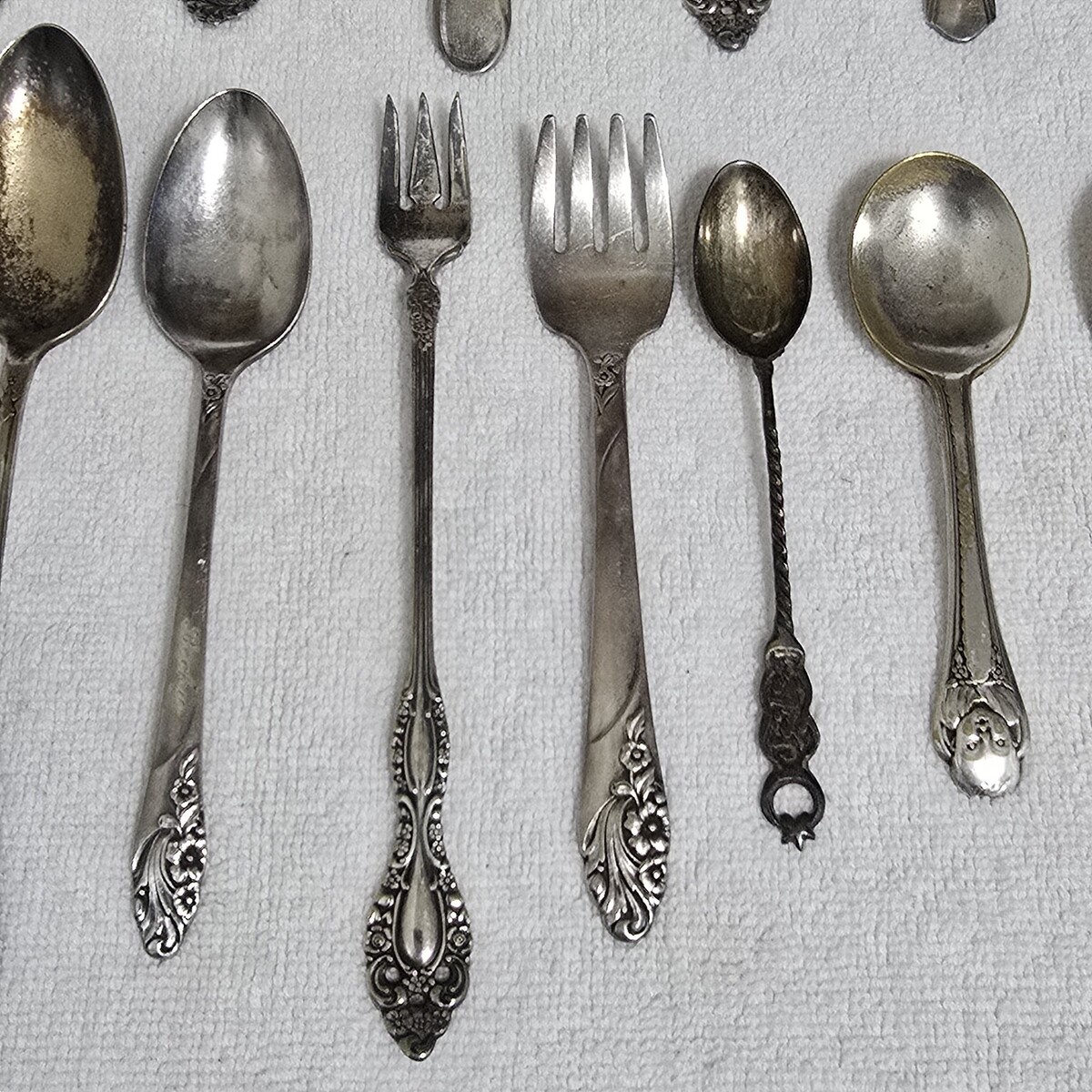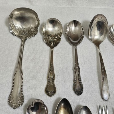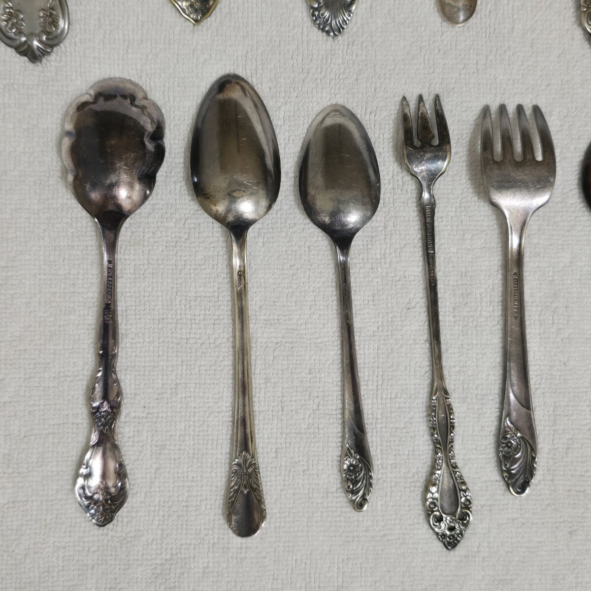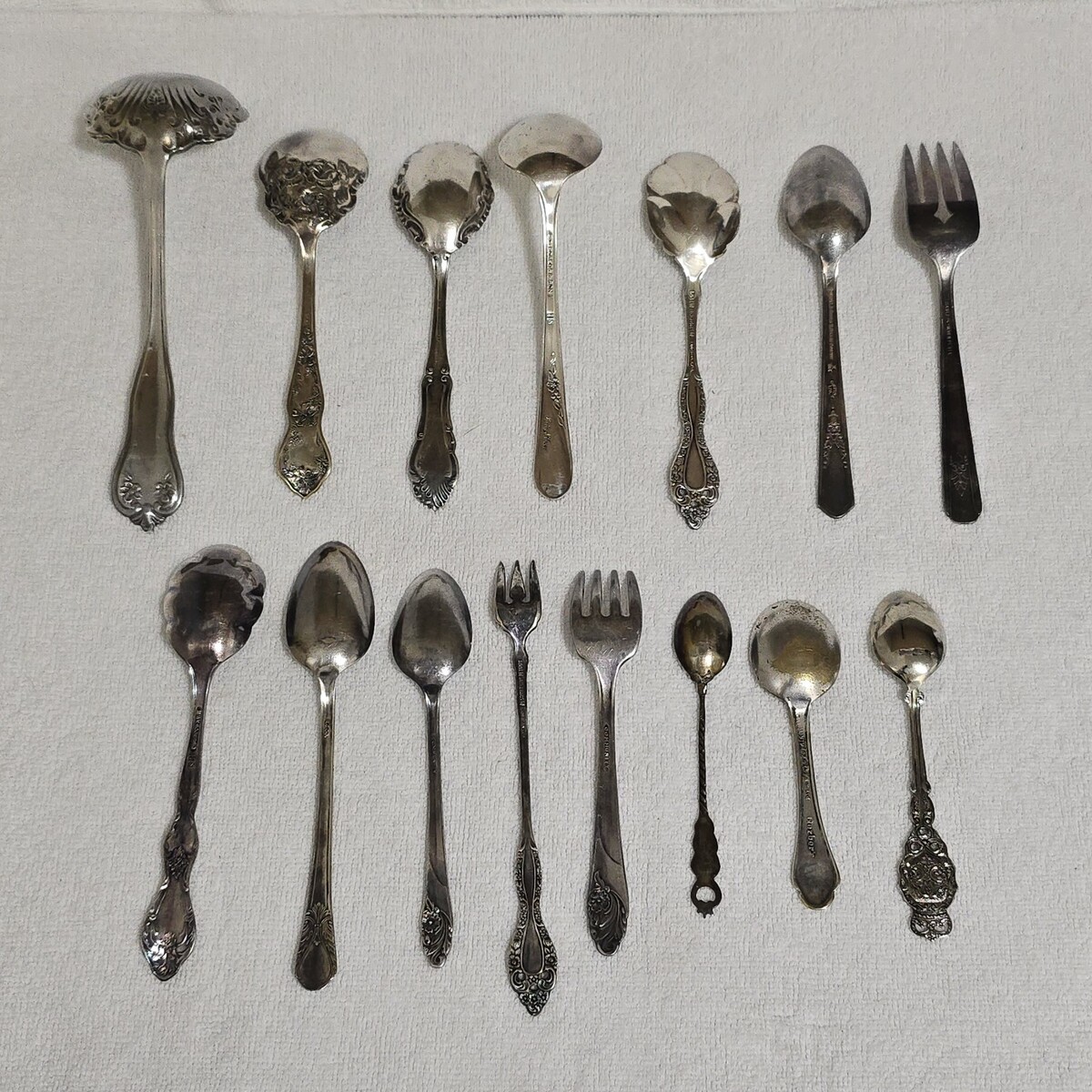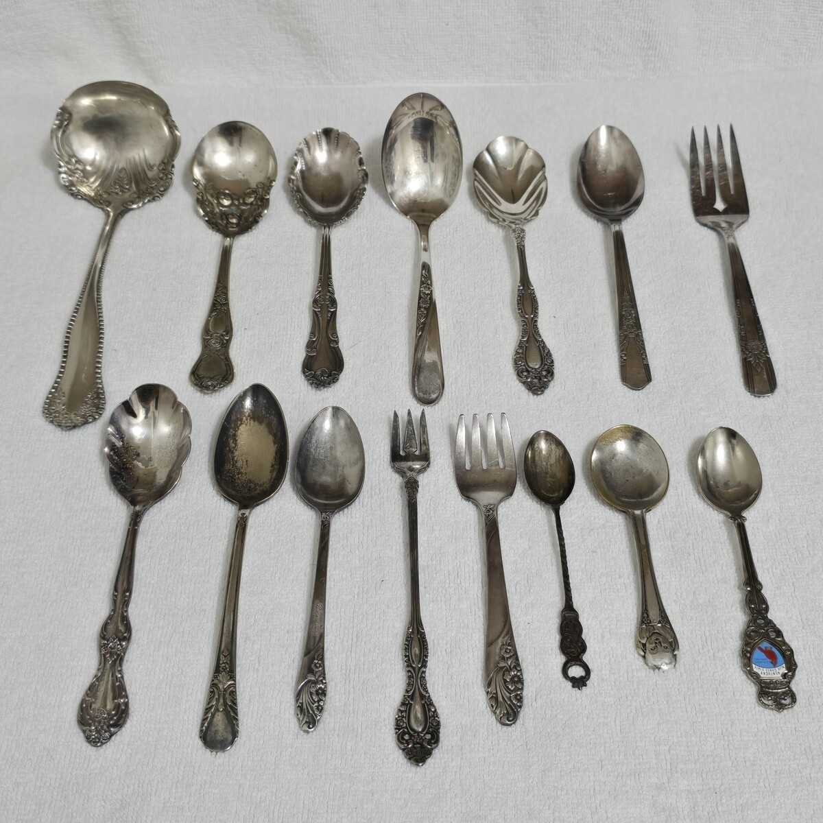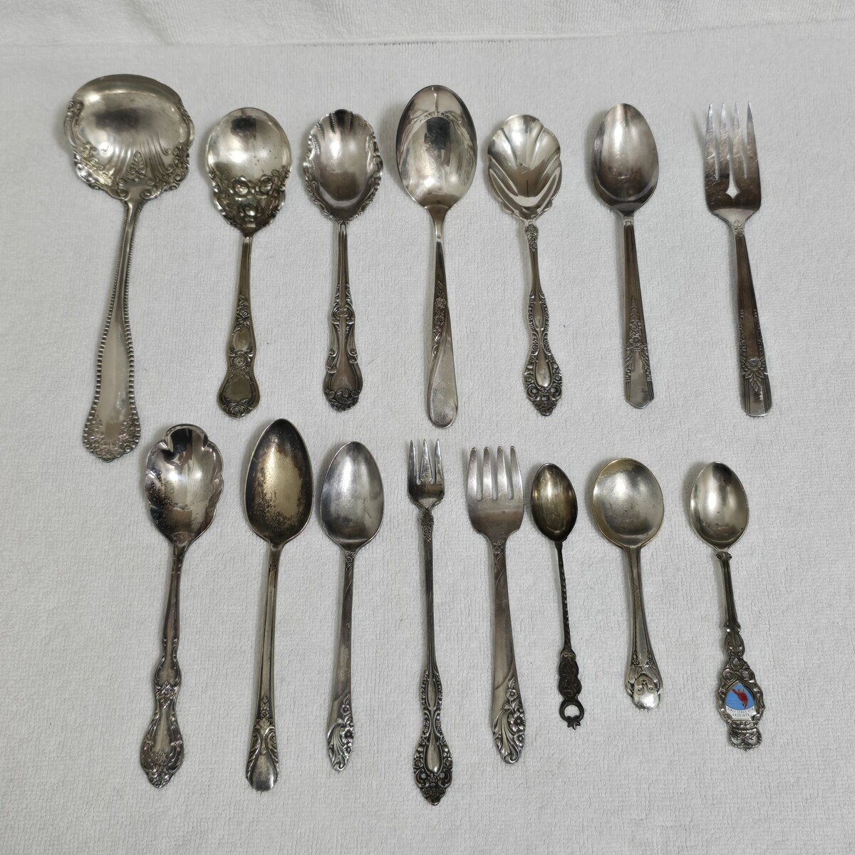 - VTG Serving Spoon Fork Lot of 15 Floral Art Some Silverplated