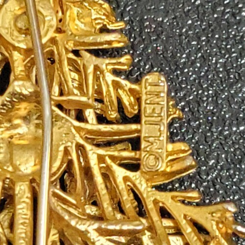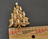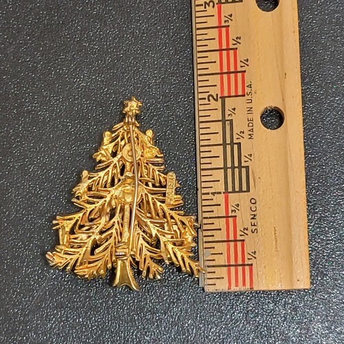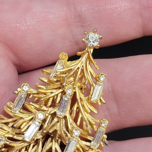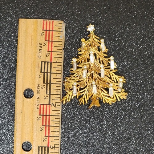 - VTG Signed M. Jent Classic Gold Christmas Tree Brooch Crystal Candles Star