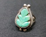- VTG Signed MM Native American Sterling Silver Turquoise LEAF Sz 6.5 Southwestern