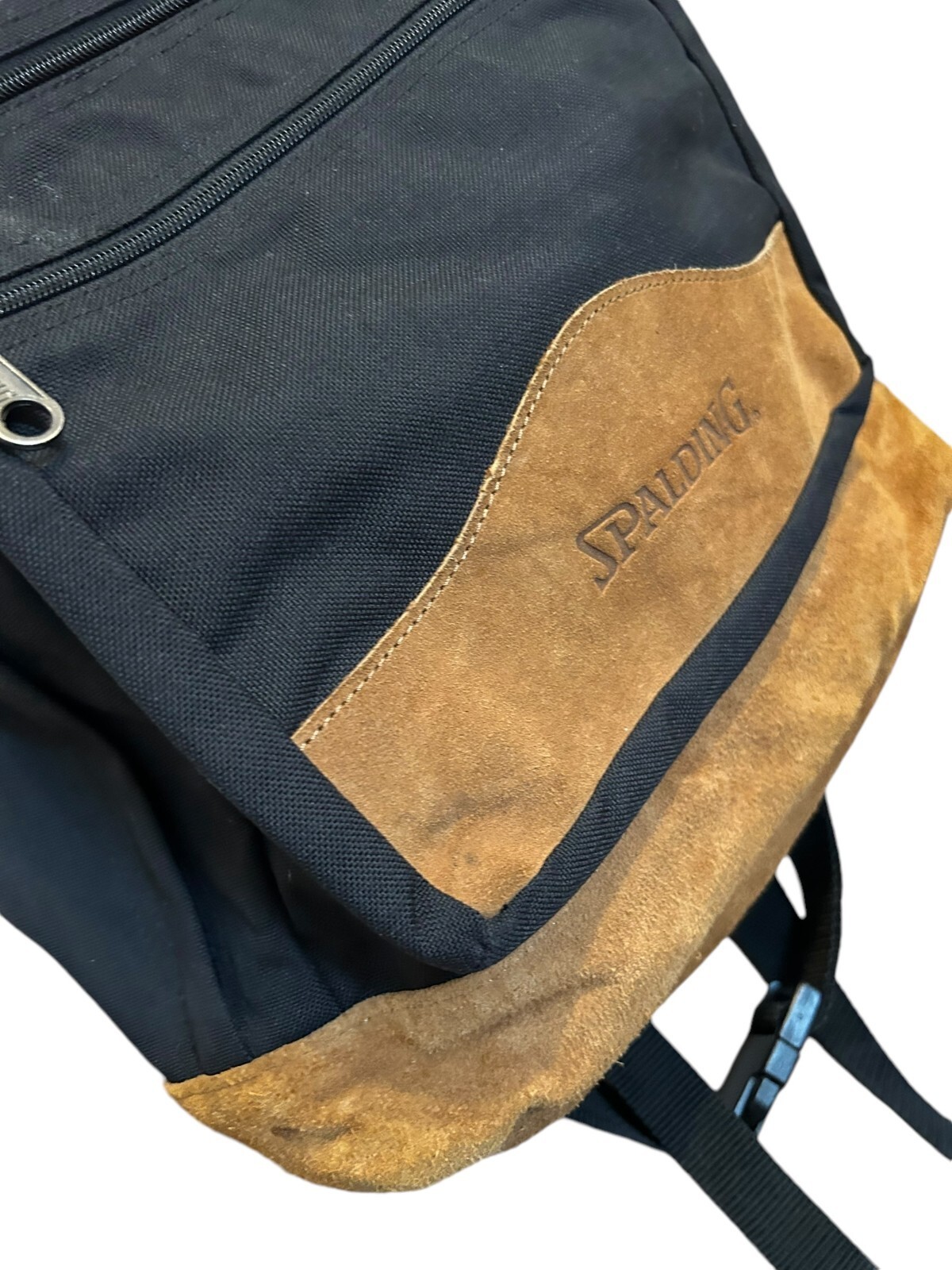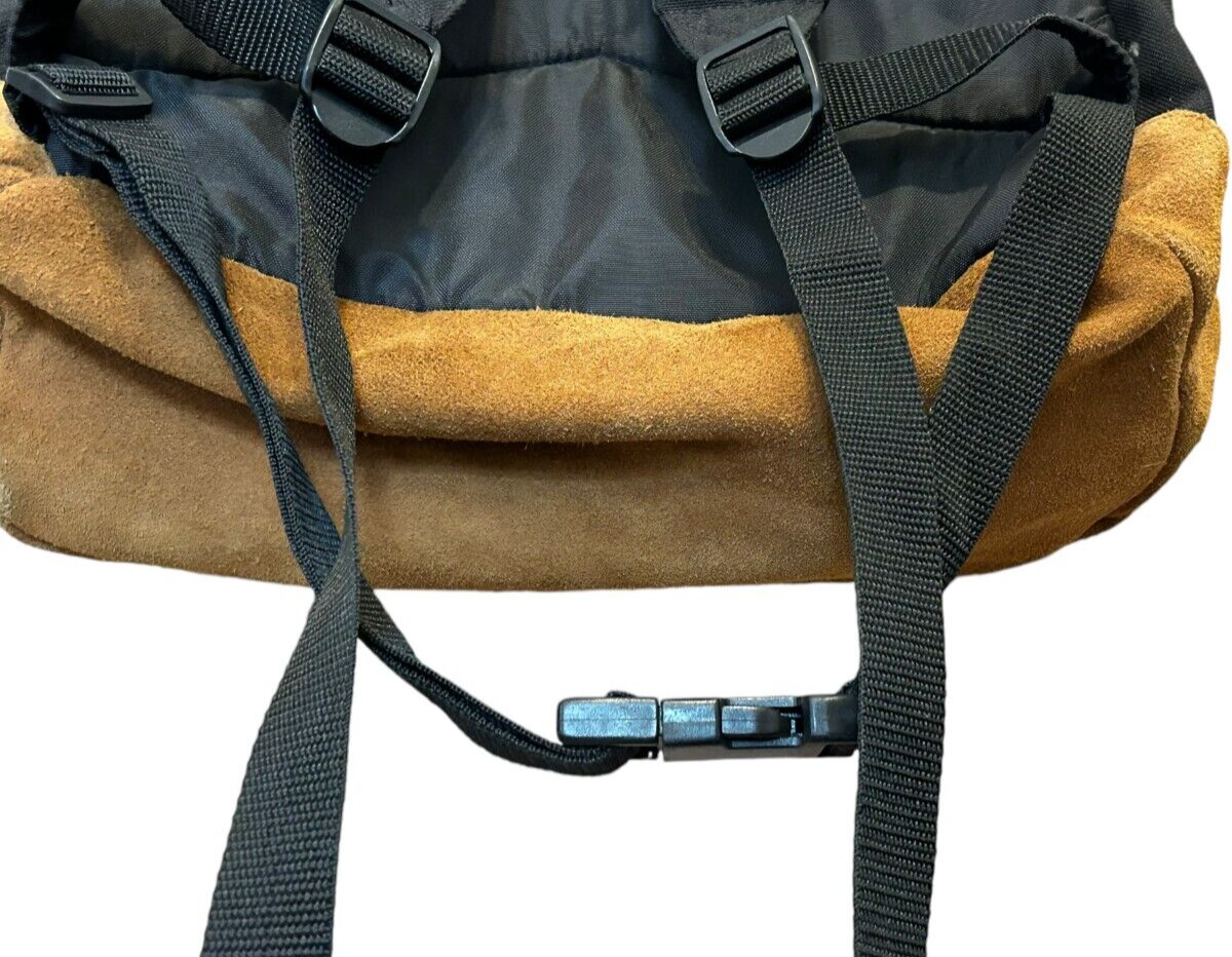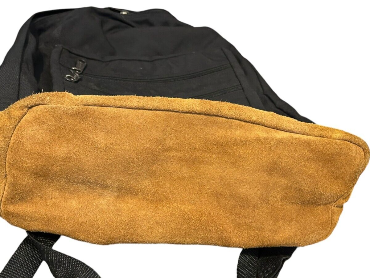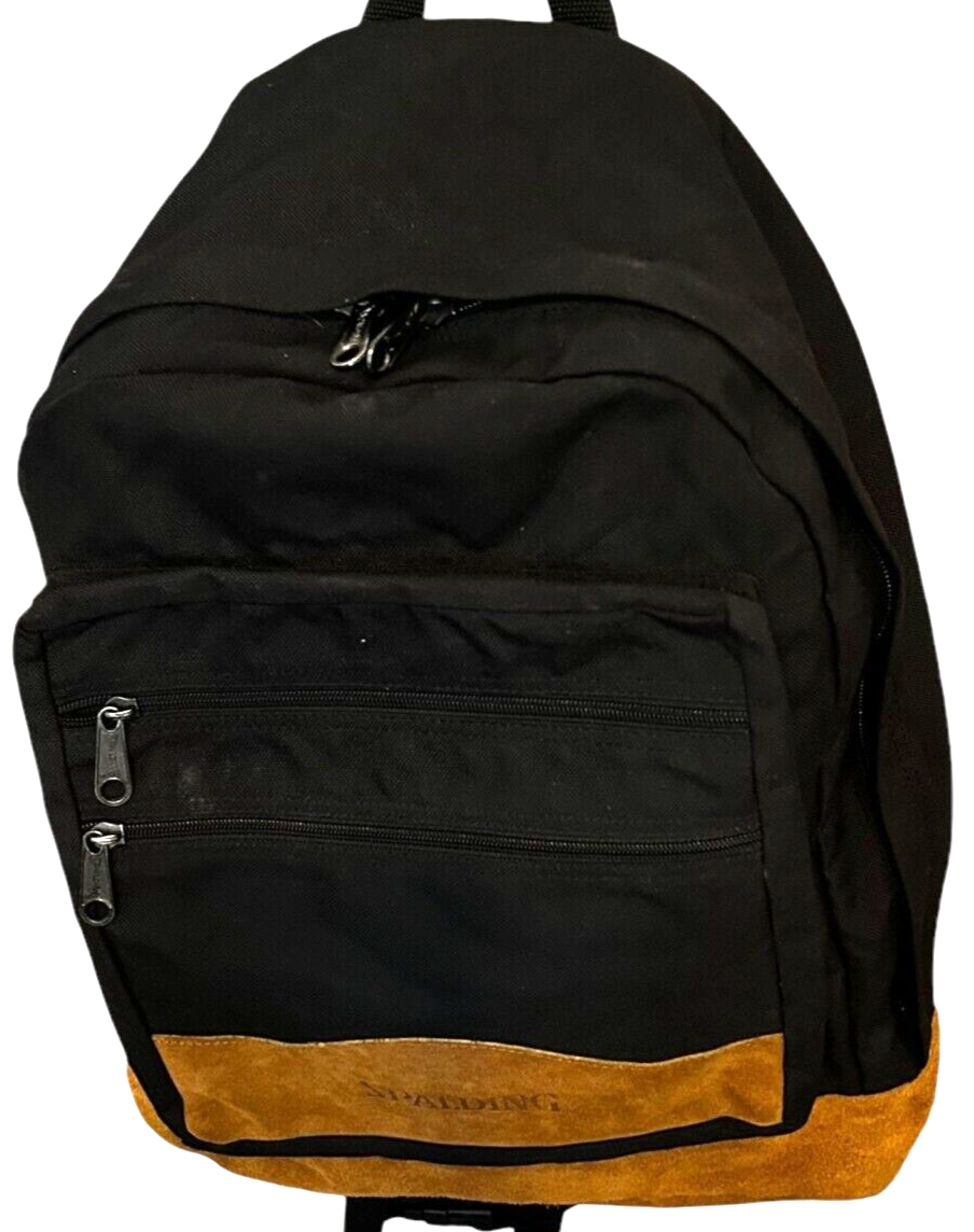 - VTG Spalding black backpack with Tan Suede Leather Bottom Daypack - 16x13x5 in