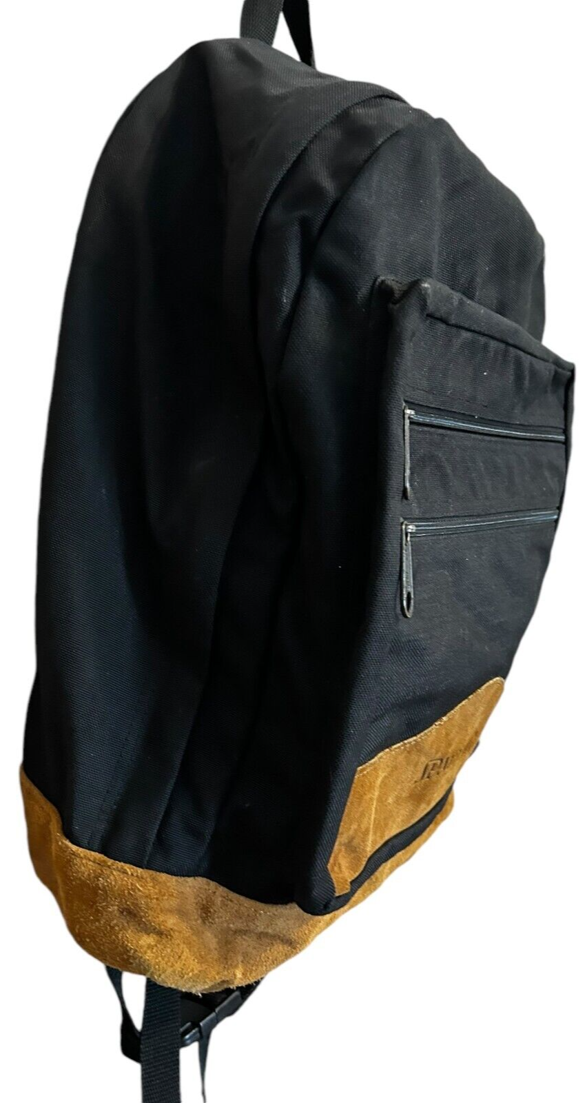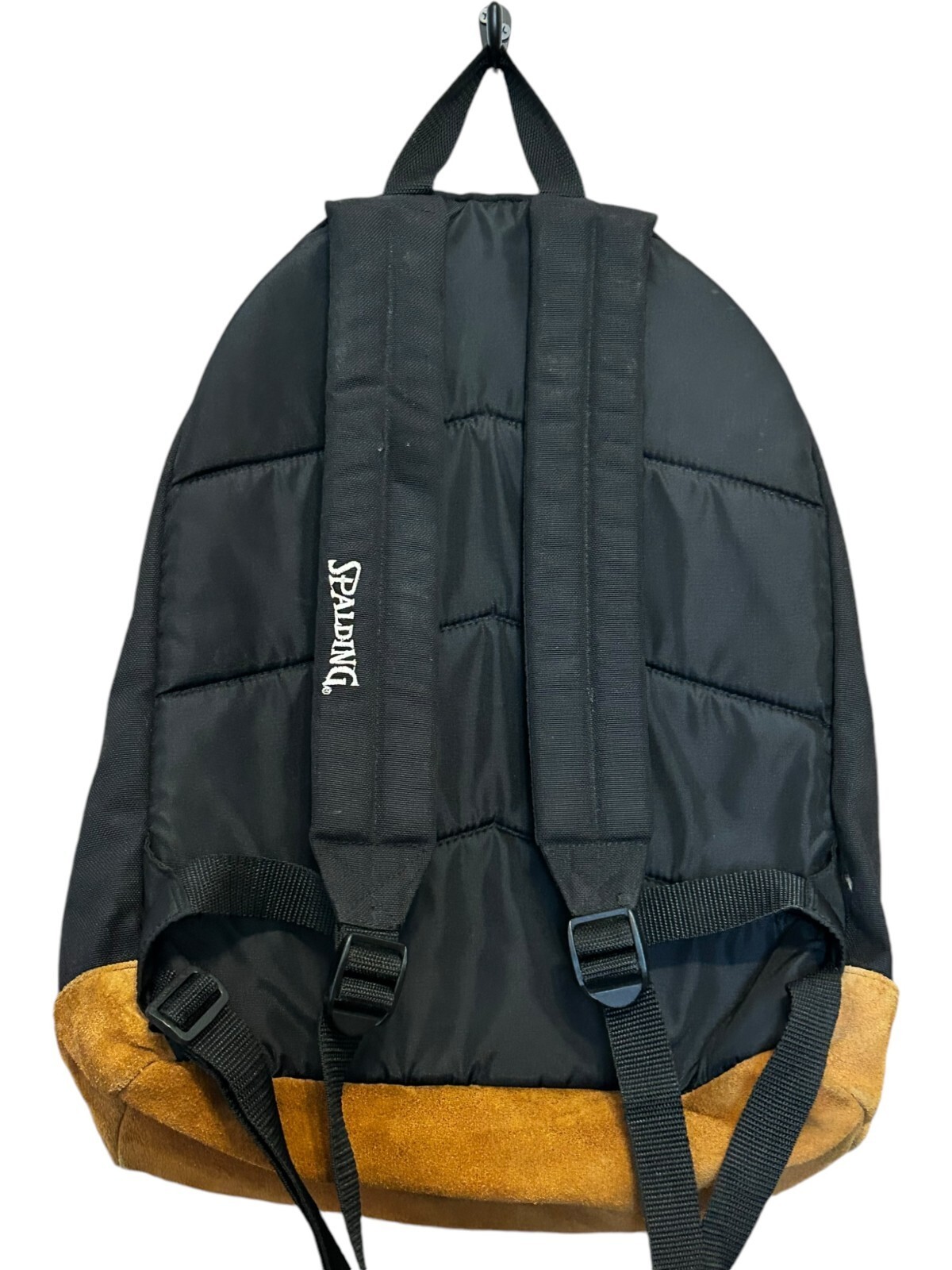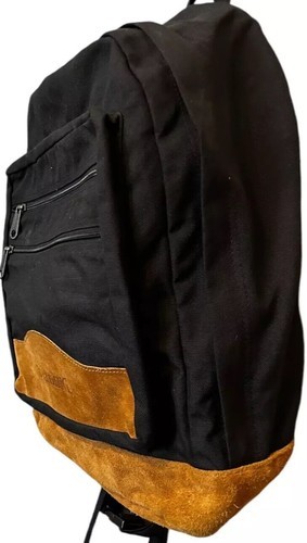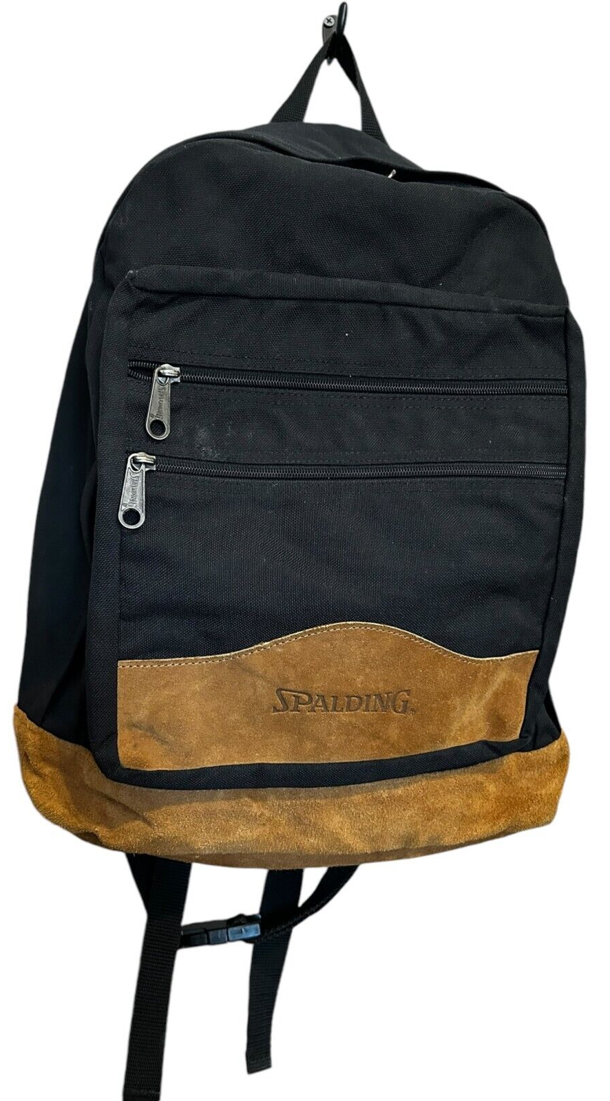 - VTG Spalding black backpack with Tan Suede Leather Bottom Daypack - 16x13x5 in