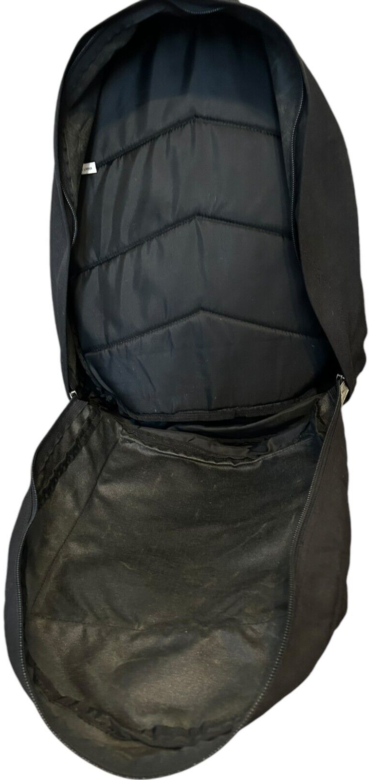 VTG Spalding black backpack with Tan Suede Leather Bottom Daypack - 16x13x5 in