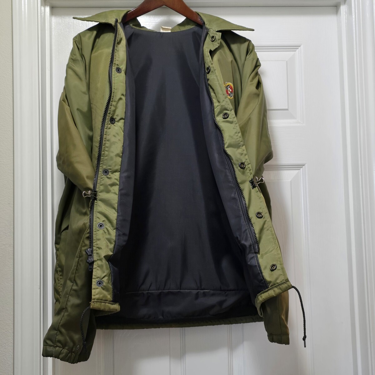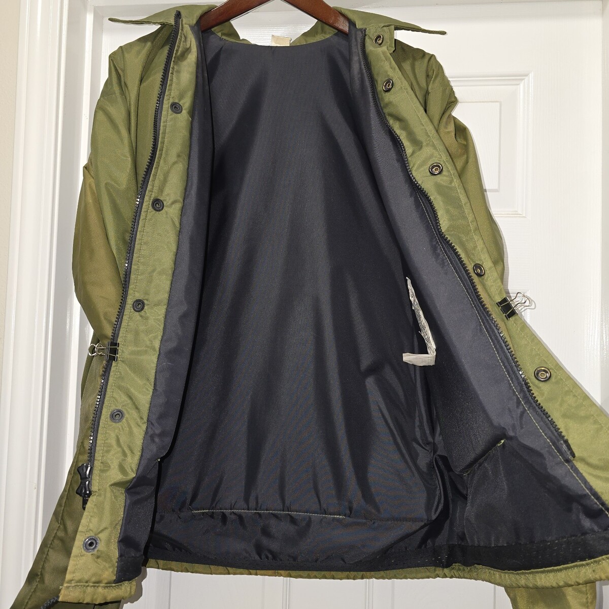 Excellent Condition Vintage Stearns Type III Personal Flotation Device Life Jacket Coat - Green. Model # FJ-7035. Size Tag: Adult Medium. Chest Size: 40 - 42". Actual measurements: 50" chest, 29" length.
