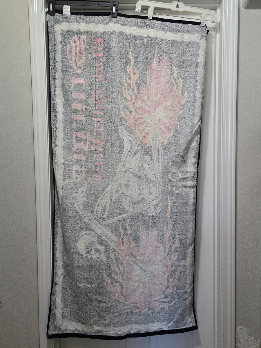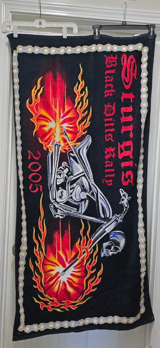 - VTG Sturgis 2005 Black Hills Rally Beach Towel Motorcycle Flames Skull 29 X 56
