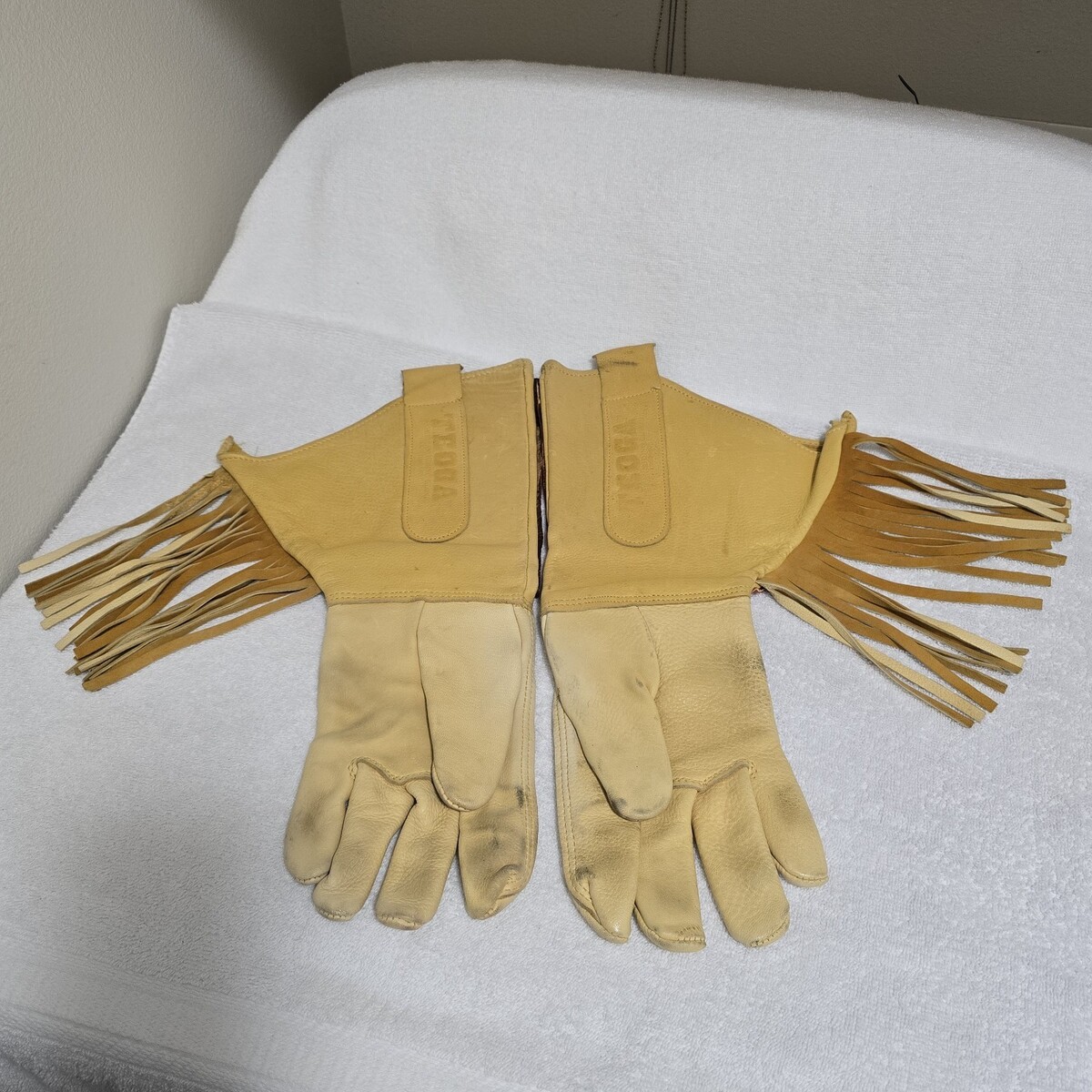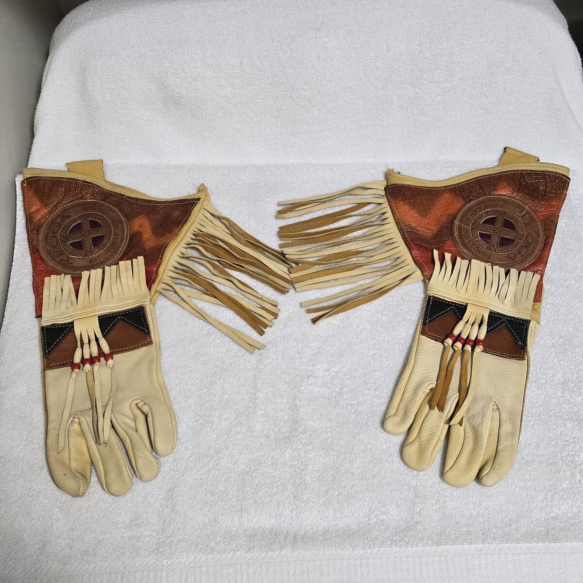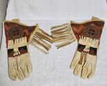 Vintage Teoga American Leather Motorcycle Gauntlet Riding Gloves - Leather Fringe / Beaded Men's Large / Women's XL.