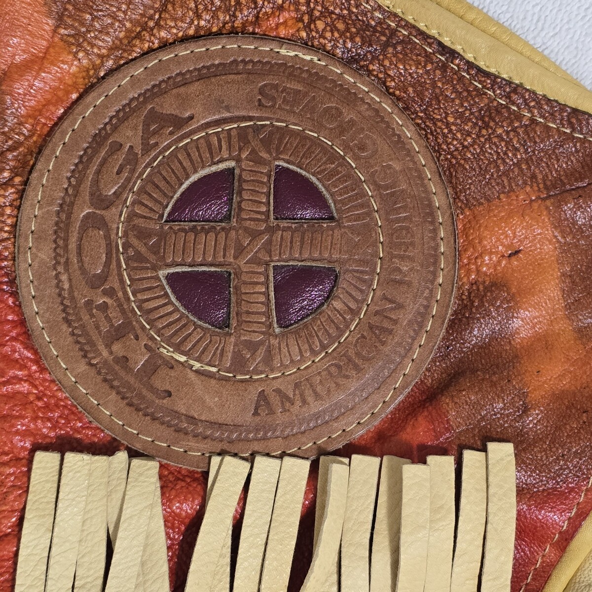 - VTG Teoga American Leather Motorcycle Gauntlet Riding Gloves Fringe Beads Mens L
