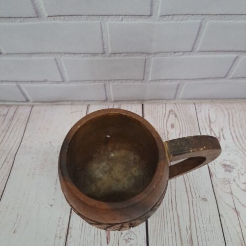 - VTG Tiki Bar Wood Wooden Mug Cup Bahamas Brown Hand Carved