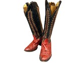 VTG Tony Lama Red Snakeskin Cowboy Boots 9B Western Stitch Black Flame 70s