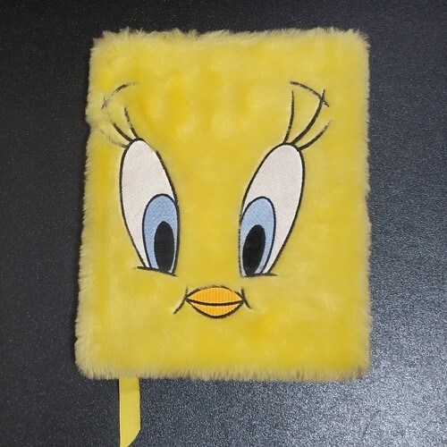 - VTG Tweety Bird Fuzzy Faux Fur Notebook 1997 Warner Bros Studio Yellow 8.5" X 7"