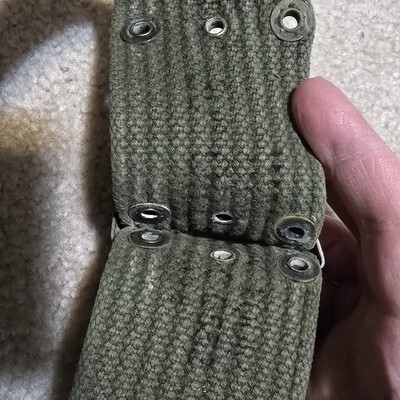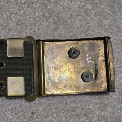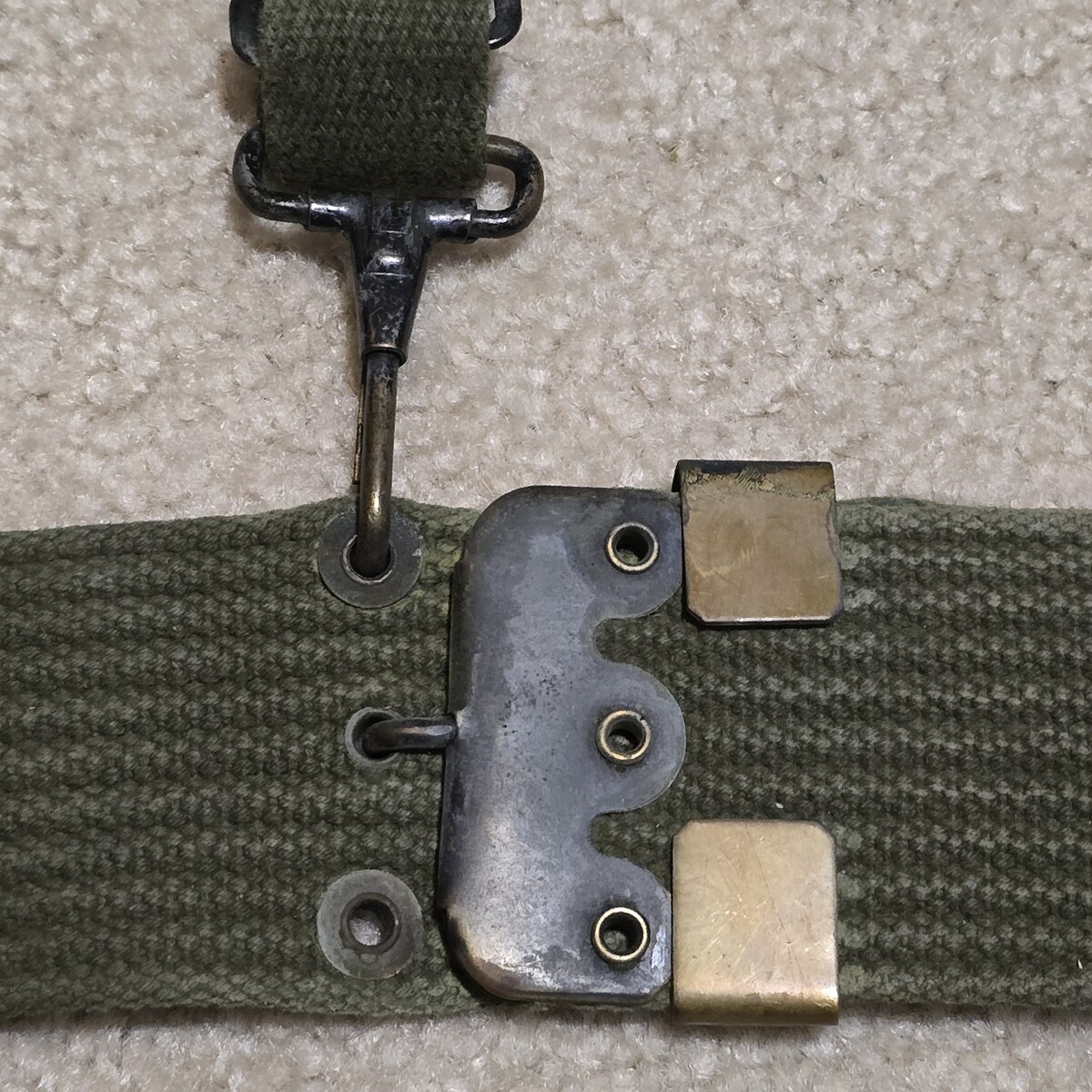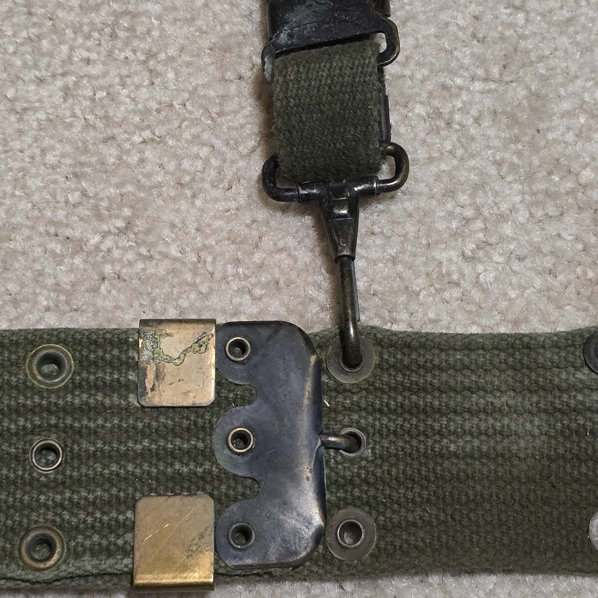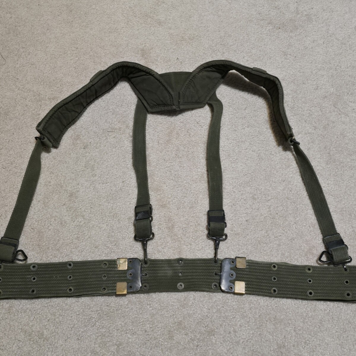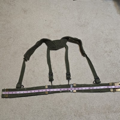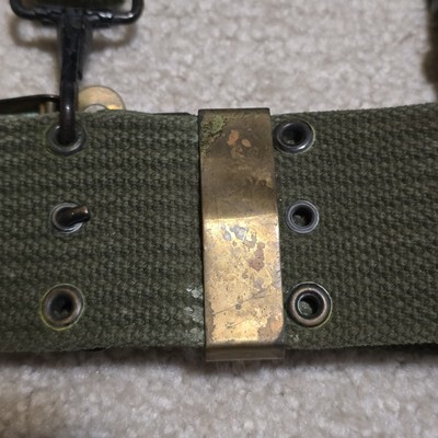 - VTG USMC M1956 Horizontal Weave LBE OD Web Belt Size L Suspenders Brass Buckle