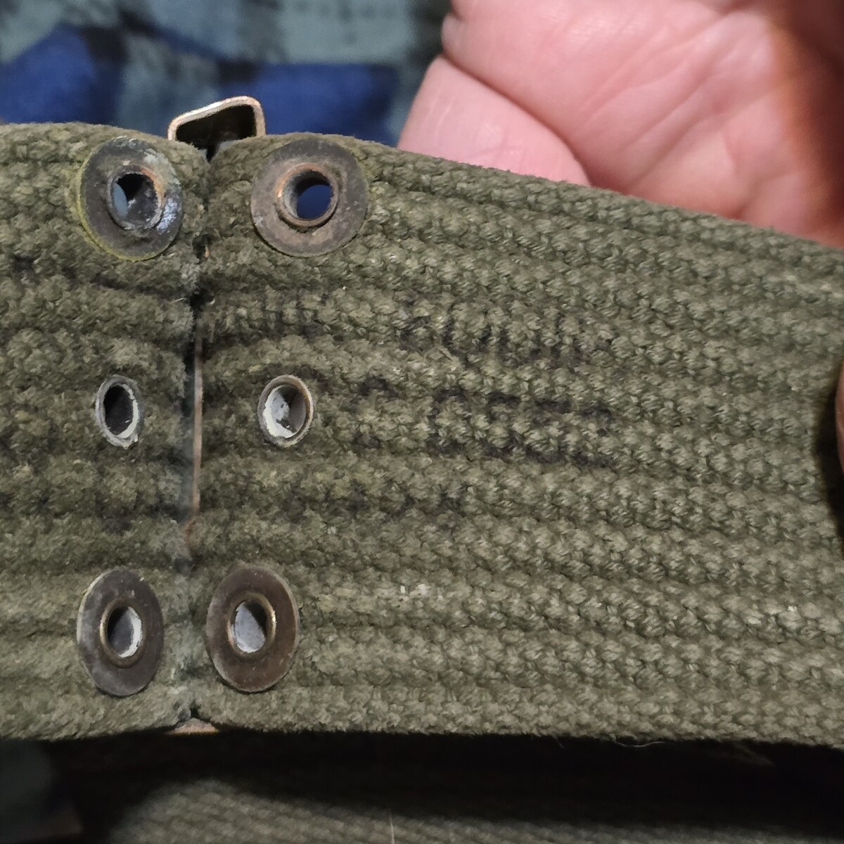 Rare Vintage USMC M1956 Horizontal Weave LBE OD Web Belt Size L - 56? w/ Suspenders and a Solid USMC Brass Buckle - US Military Issued.