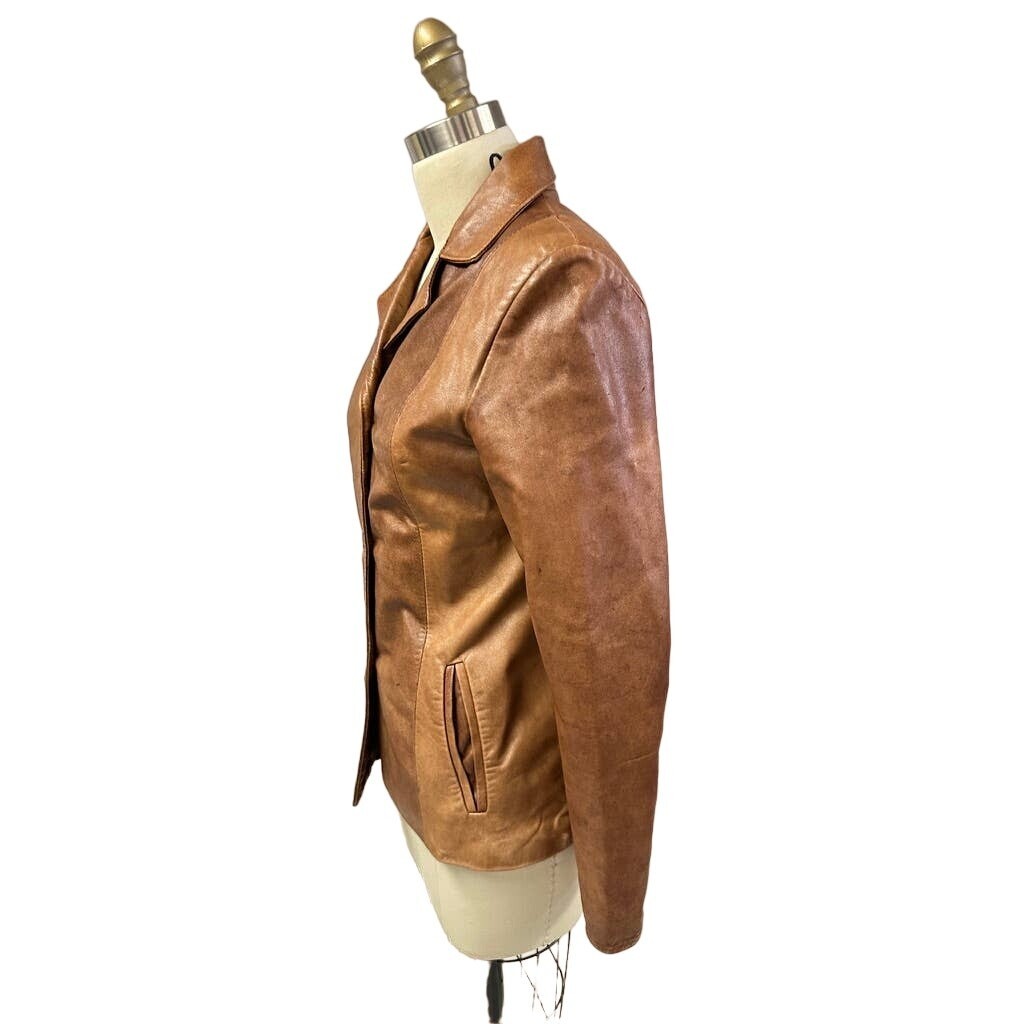 - VTG Vera Pelle Italian Leather Jacket Cognac Brown Distressed Notch Collar Sz M