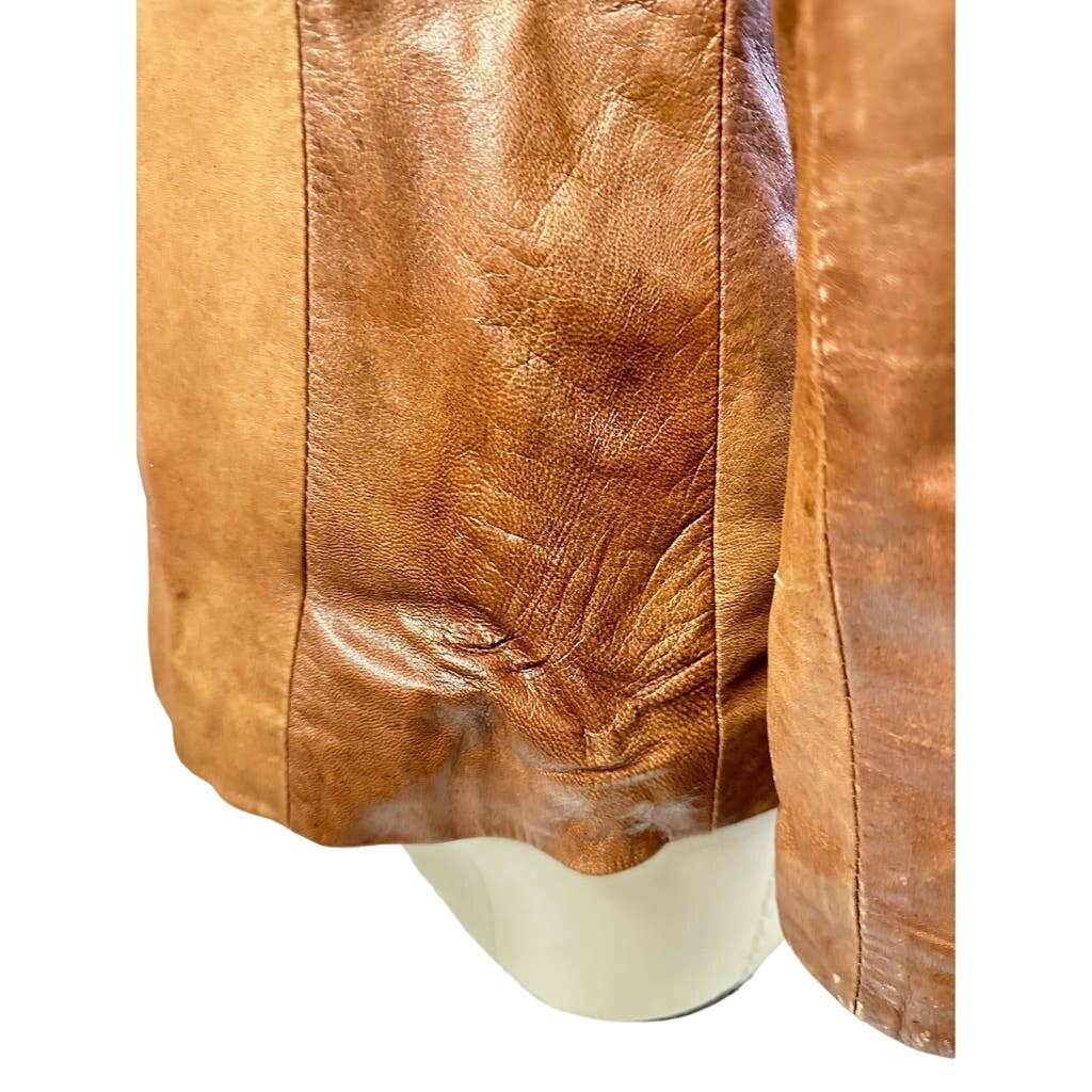 VTG Vera Pelle Italian Leather Jacket Cognac Brown Distressed Notch Collar Sz M