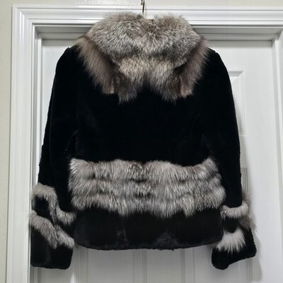 VTG William Furs Reno Black Sheared Mink Silver Fox Trim Fur Coat Women's S