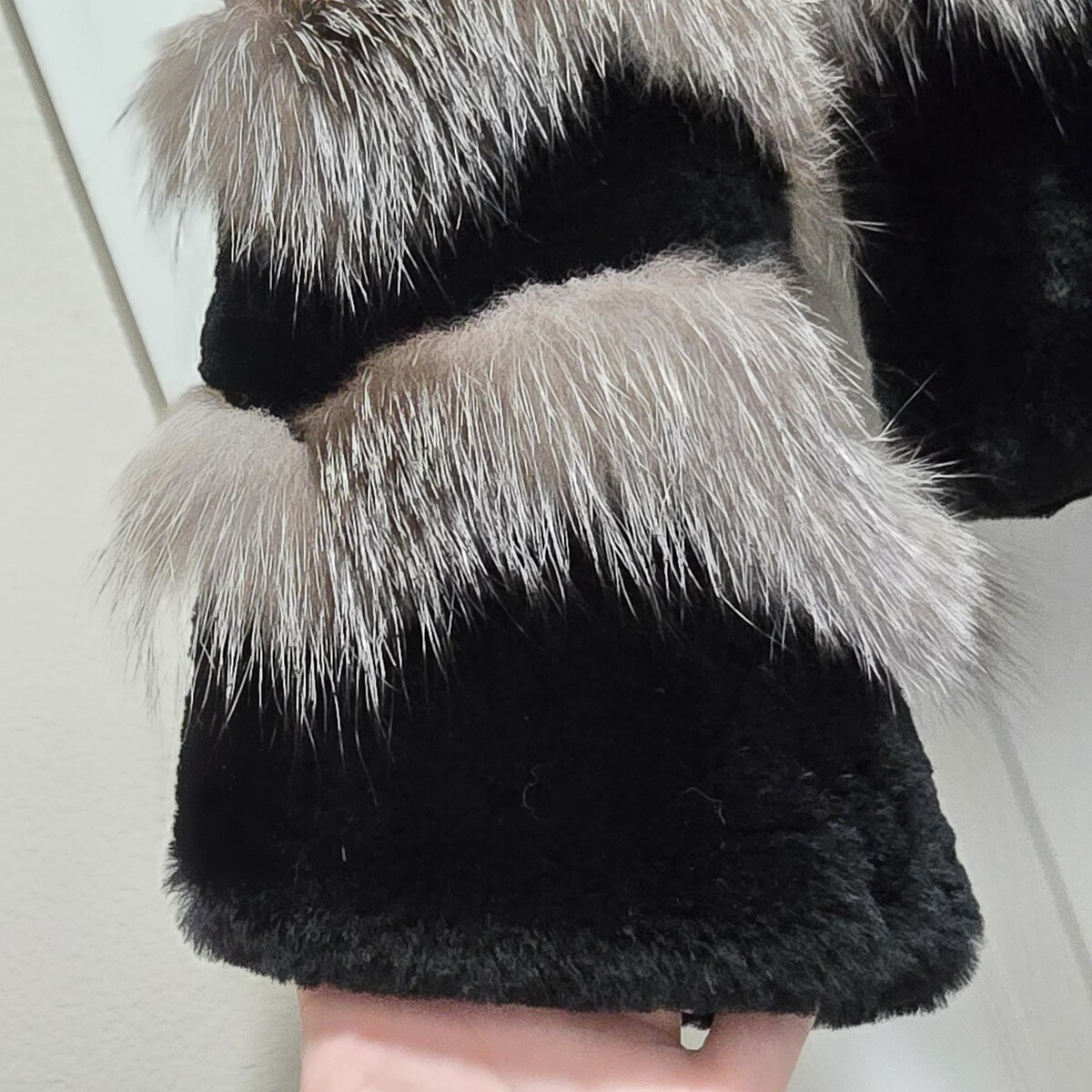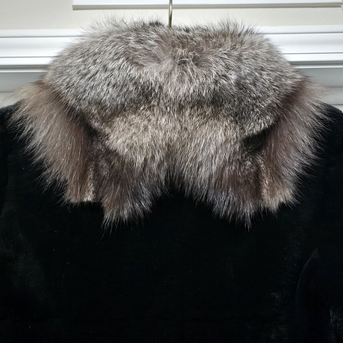 - VTG William Furs Reno Black Sheared Mink Silver Fox Trim Fur Coat Women's S