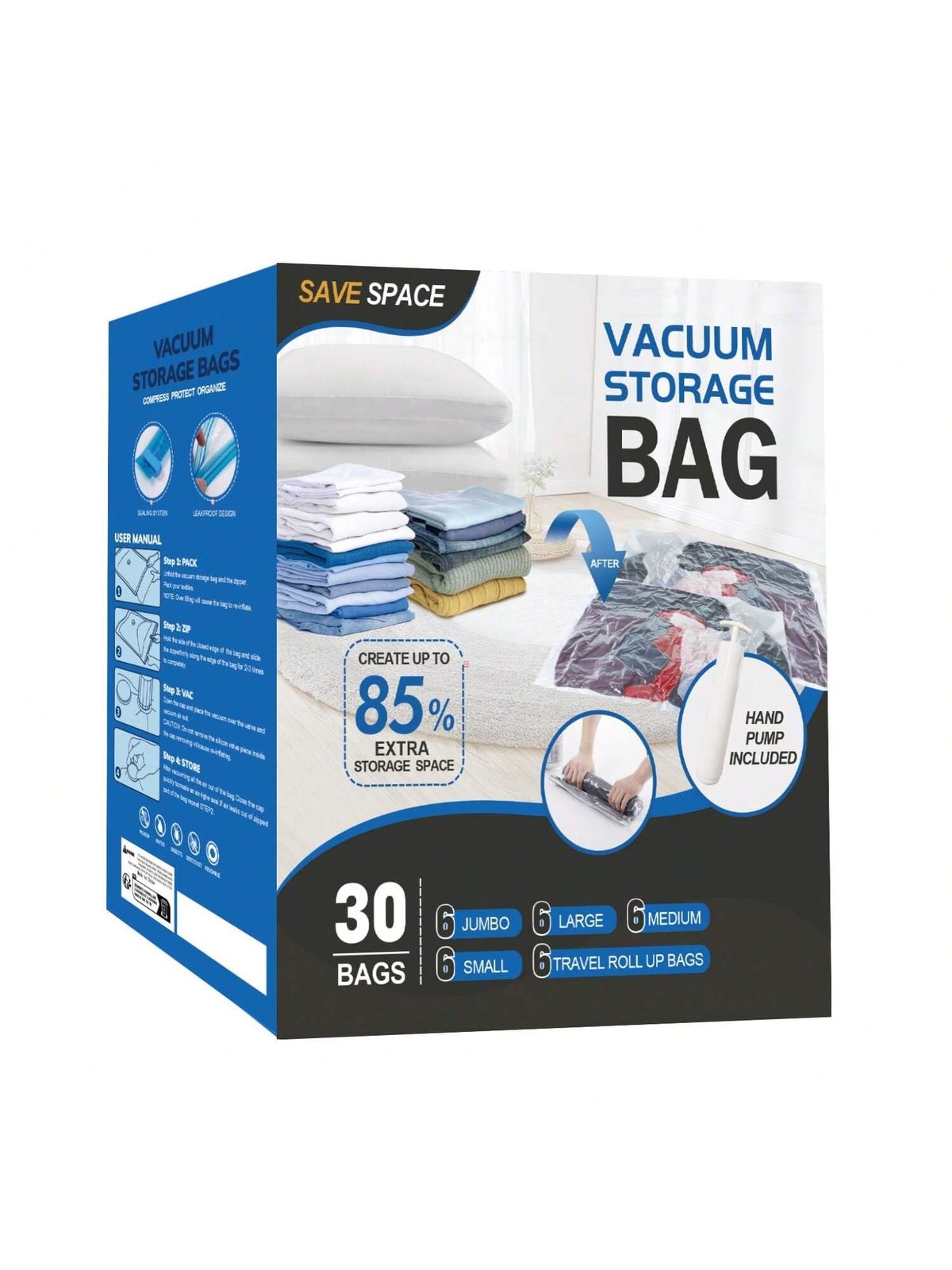 Product description: Transform your storage space with these versatile vacuum storage bags, available in convenient packs of 4, 8, 20, or 30 pieces. Perfect for compressing bulky items like comforters, blankets, and seasonal clothing, these space-saving bags help maximize your closet, attic, or under-bed storage. Each set includes a hand pump for easy air removal, making it simple to reduce the volume of soft goods by creating an airtight seal. The durable construction helps protect your belongings from dust and moisture while stored. These compression bags are ideal for home organization, moving, or travel - simply fill, seal, and pump out the air to create compact, stackable storage solutions. The transparent design allows you to easily identify contents without opening. Whether you're storing winter clothes for the summer or packing away extra bedding, these vacuum storage bags offer a practical solution for your storage needs.