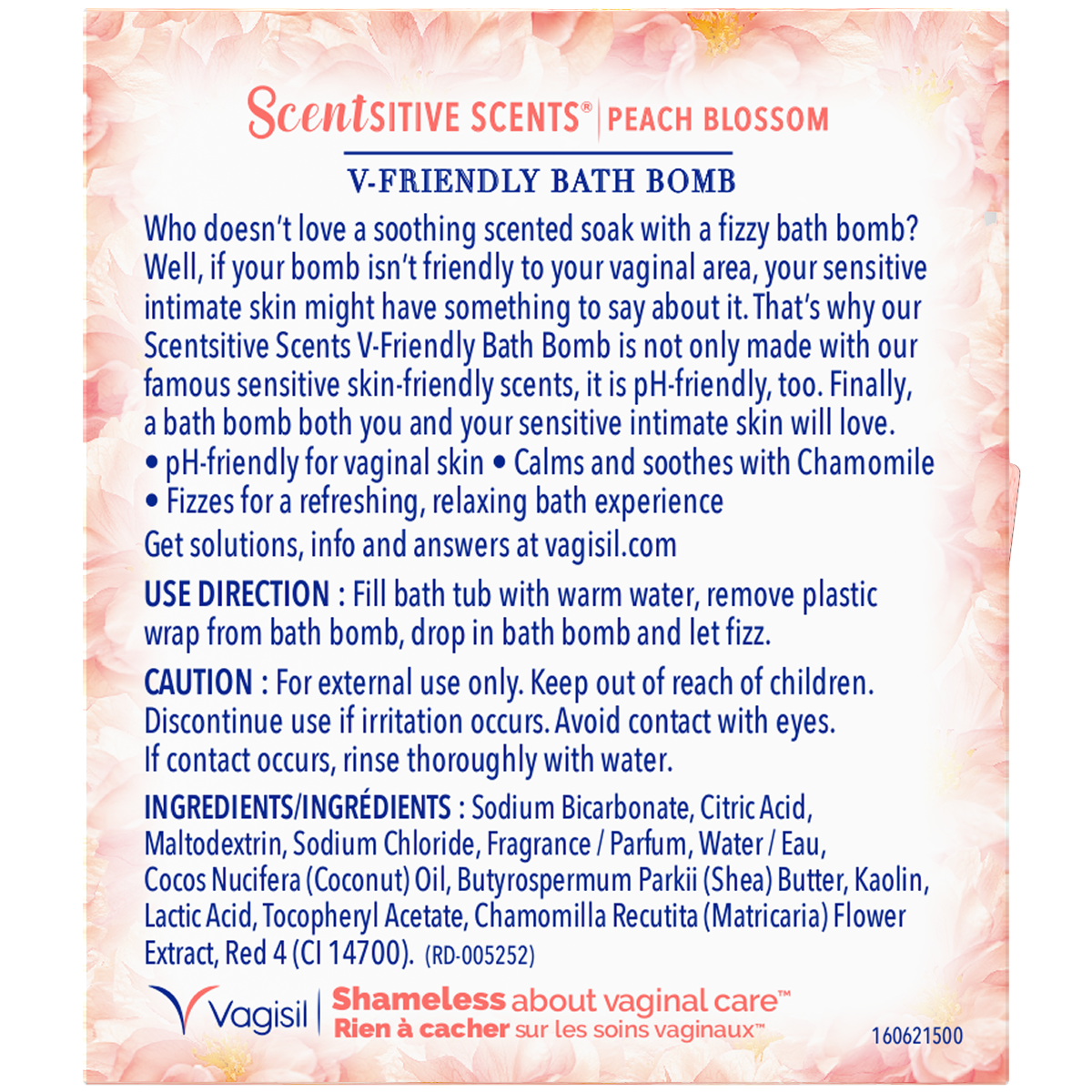 - Vagisil Scentsitive Scents V-Friendly Bath Bomb, PEACH BLOSSOM