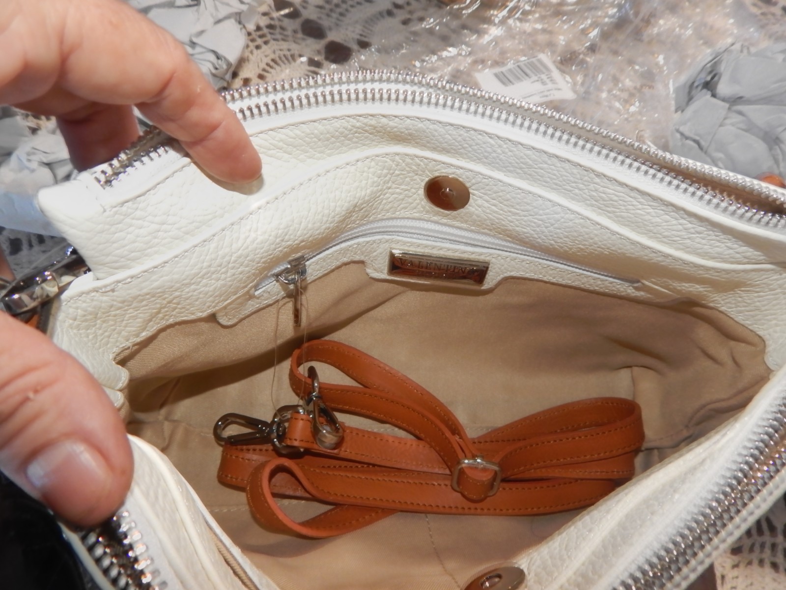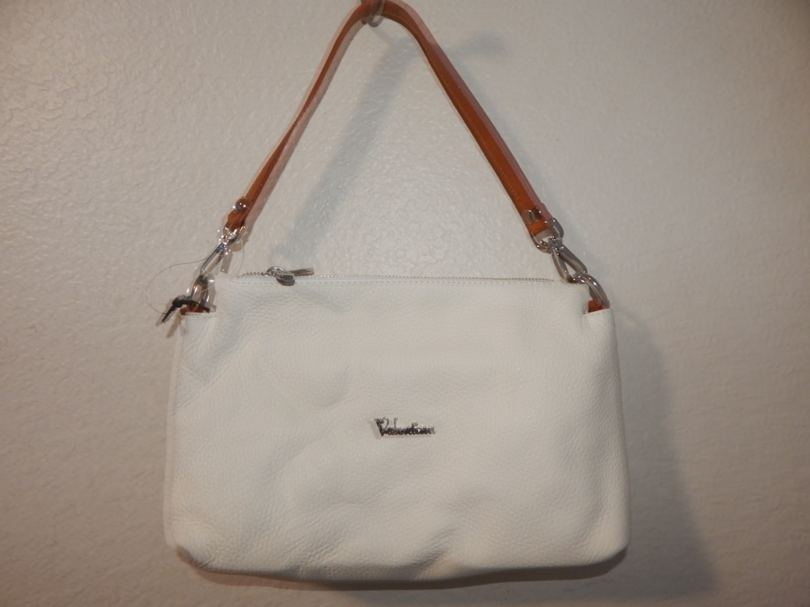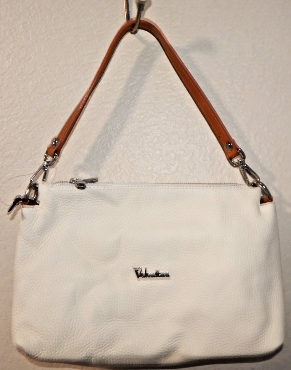 - VALENTINA Made In Italy WHITE Pebbled Leather Multi Entry Crossbody