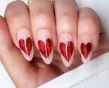 - Valentine's Day Press On Nails Red French Tip Heart Design 24PCS Medium Size