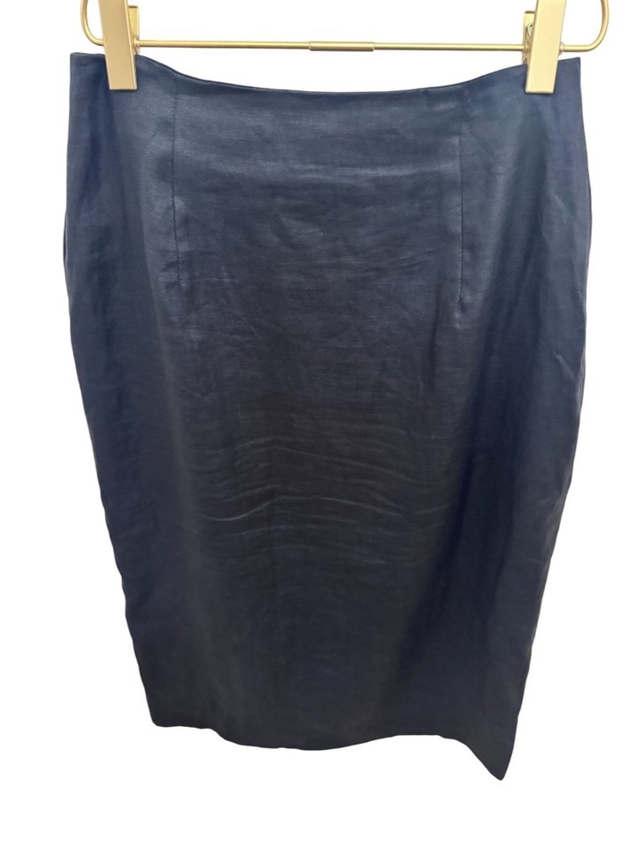 - Valerie Stevens Black Pure Linen Wrap Pencil Skirt, Size 6