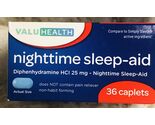 - ValuHealth-Diphenhydramine HCI 25mg-Nighttime Sleep Aid 1 Box Of 36 Caplets-NEW