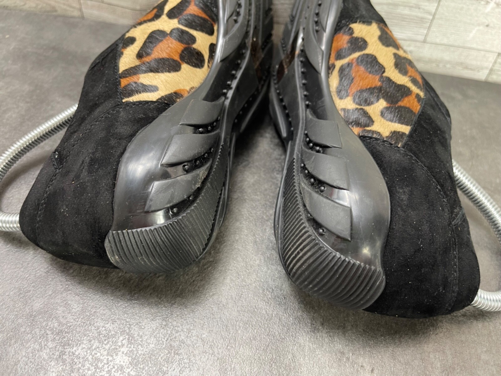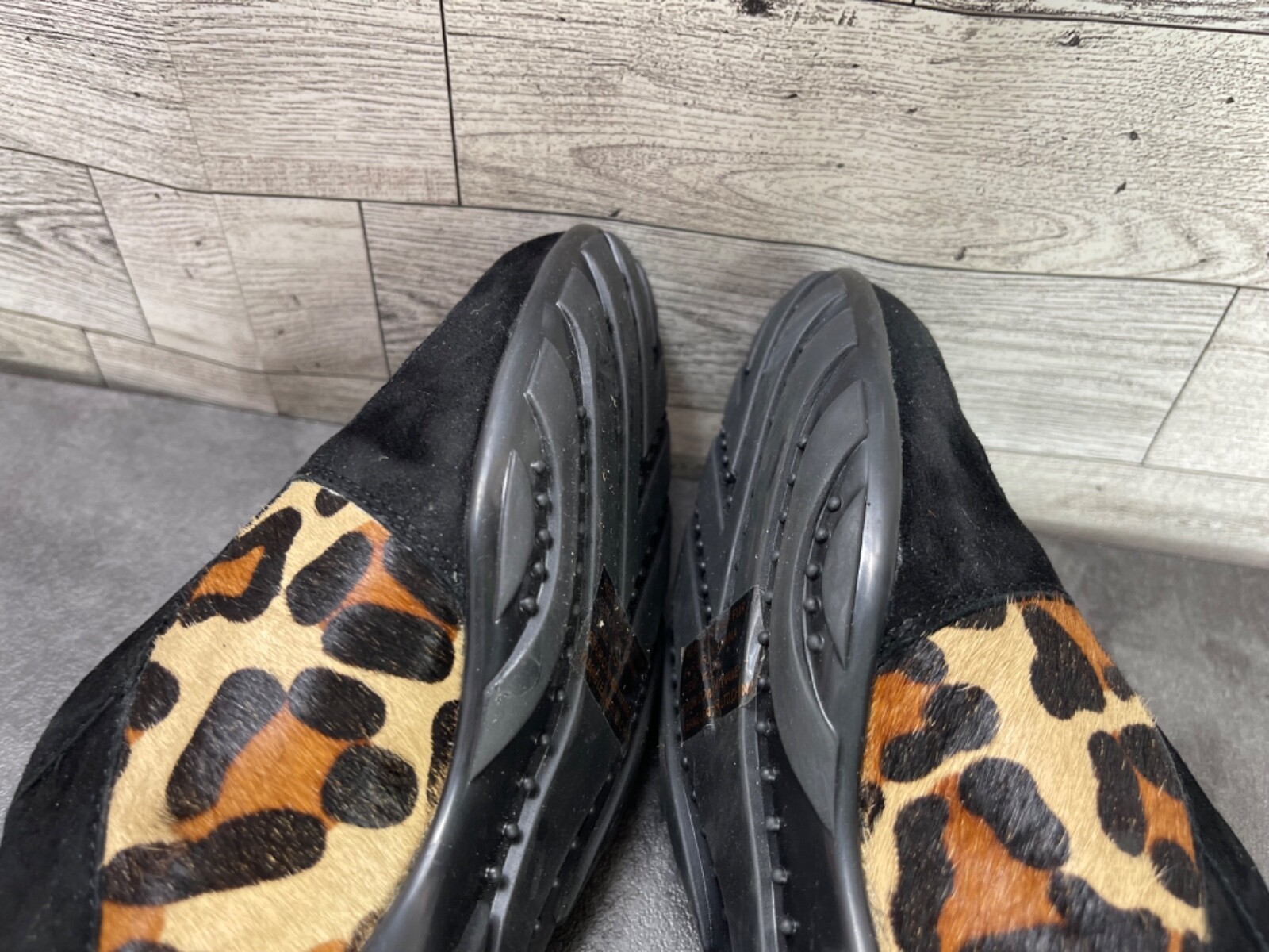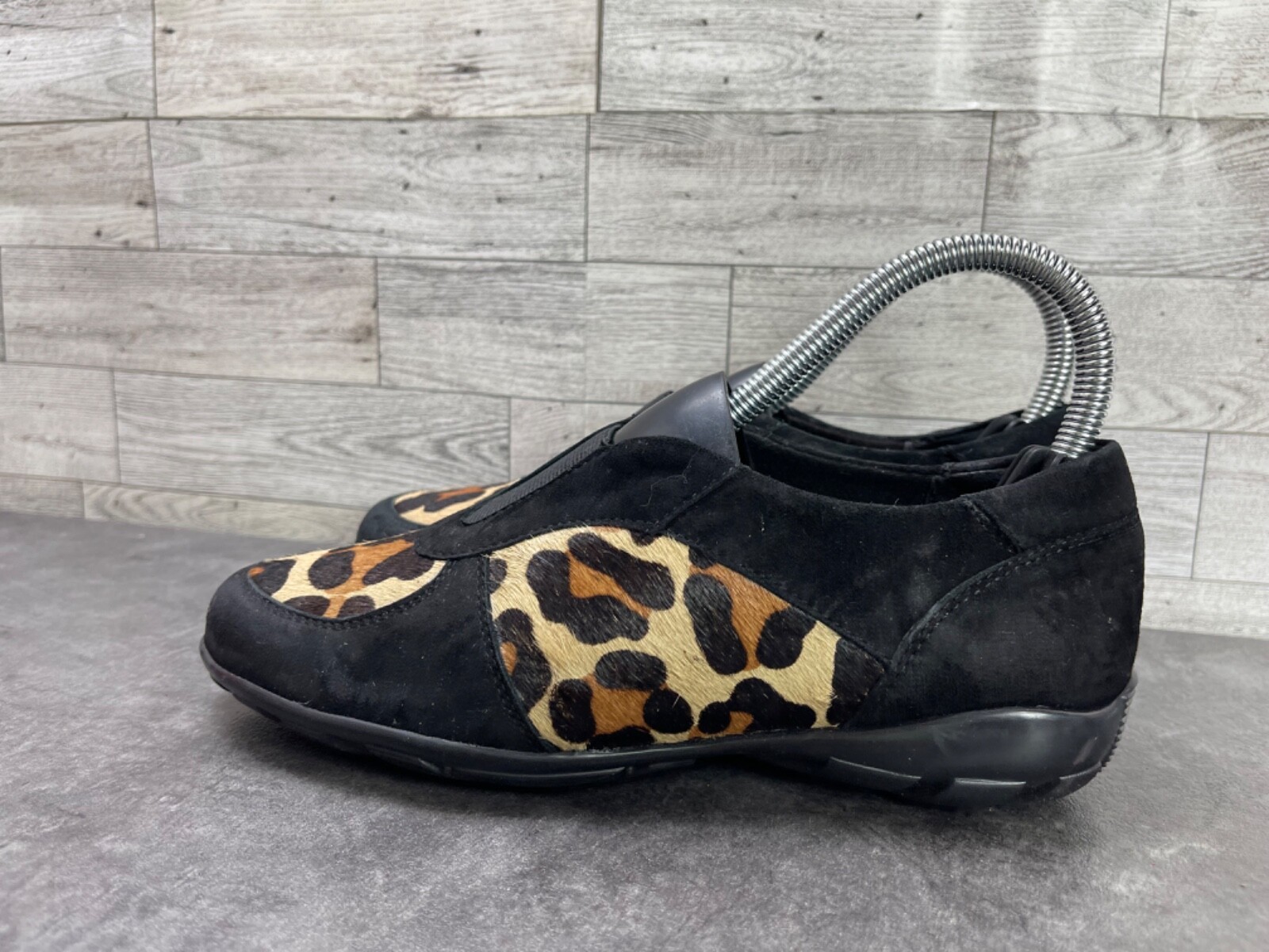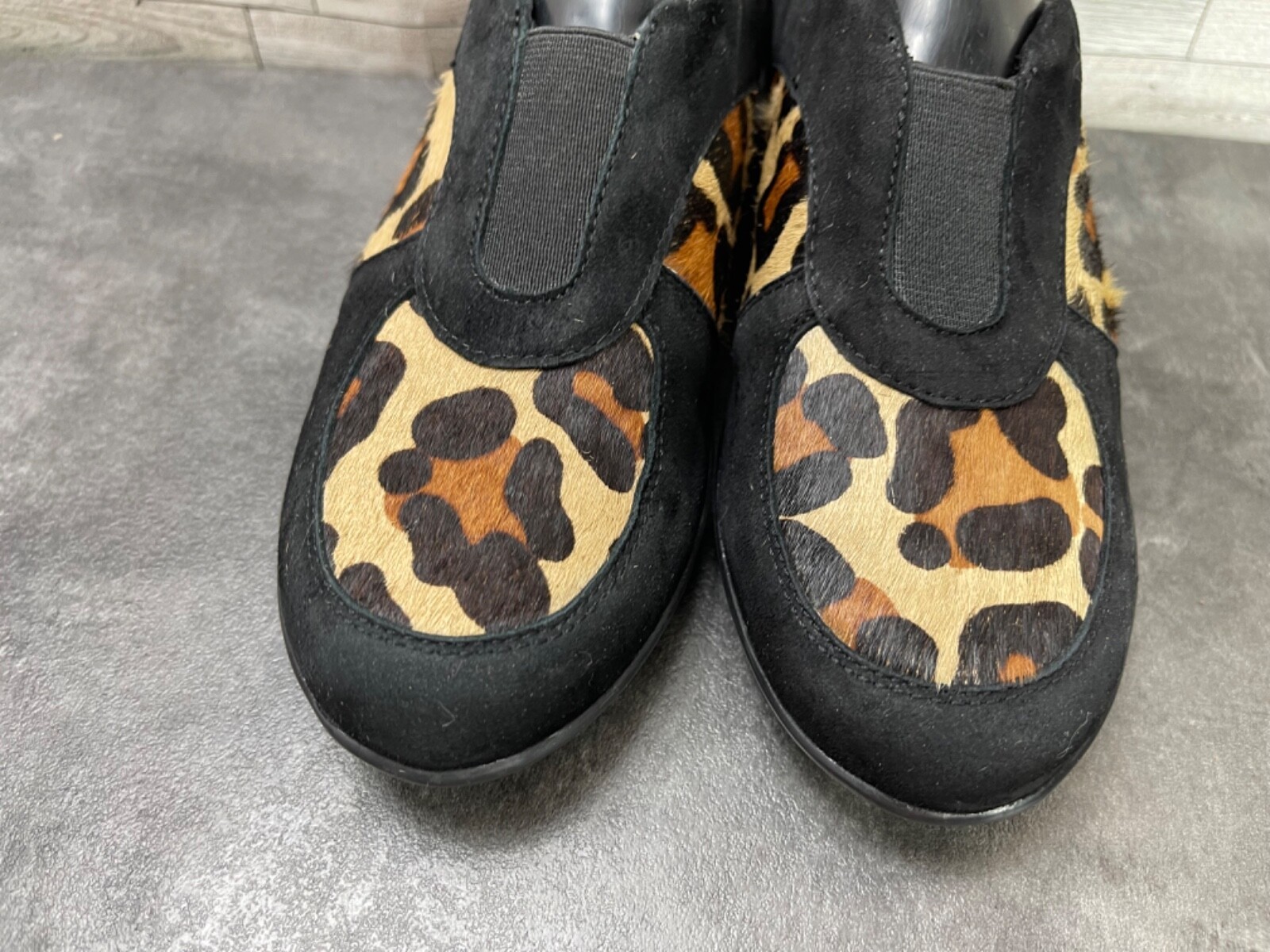 - Vaneli Sport Loafers Women 7 M Shoes Black Brown Suede Calf Fur Slip-On Flats