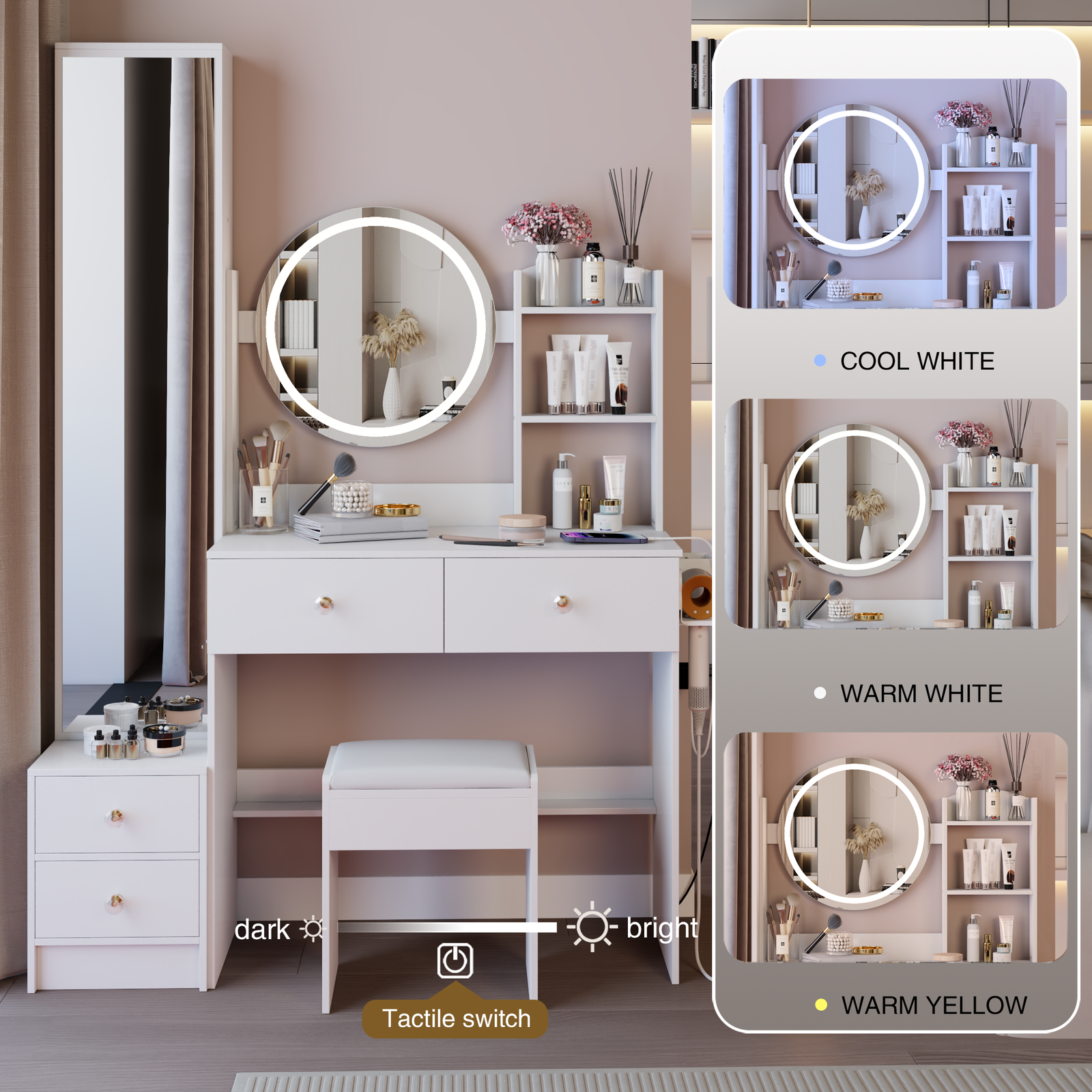 Vanity Table Set: Full Body Mirror, LED Mirror, Stool, Power Outlets