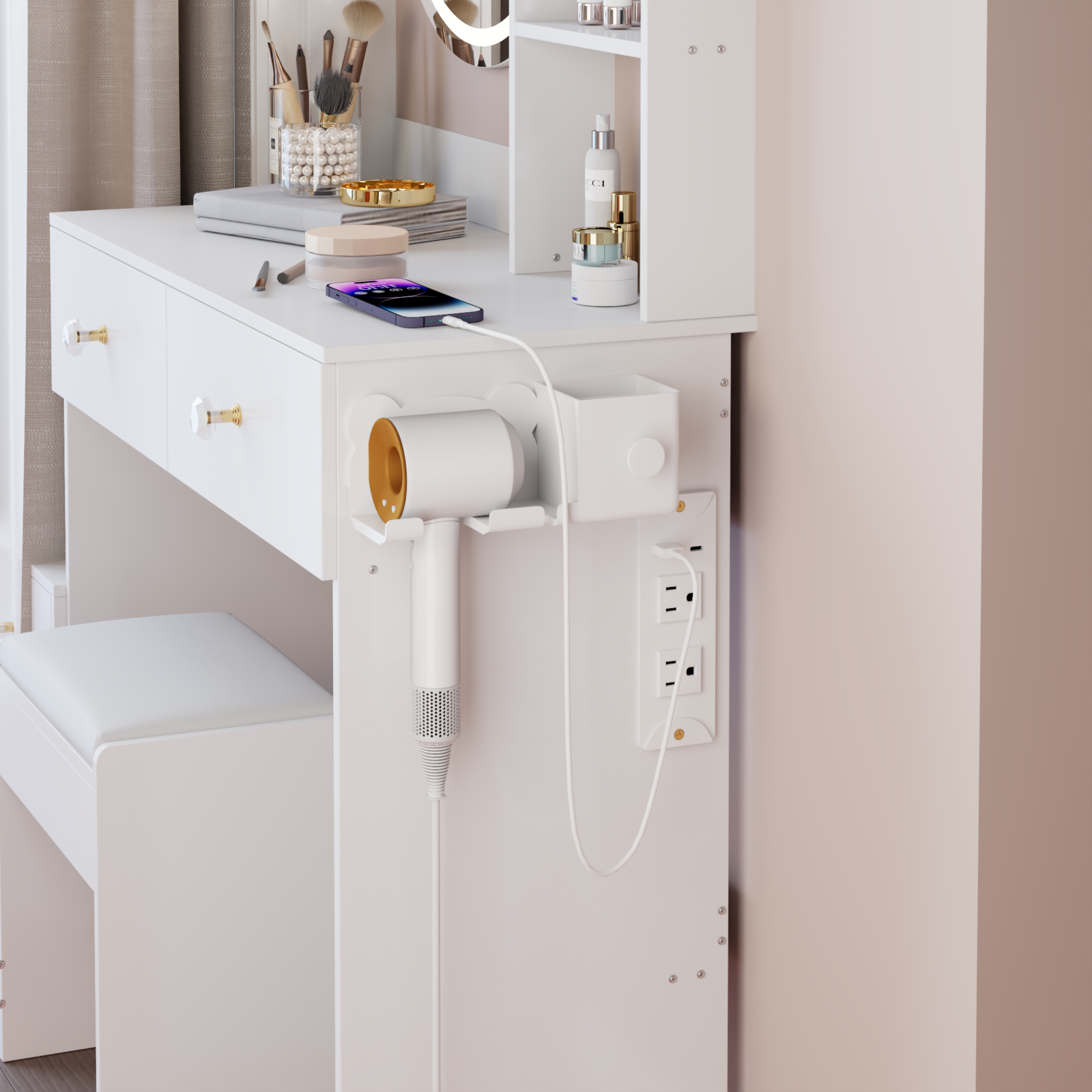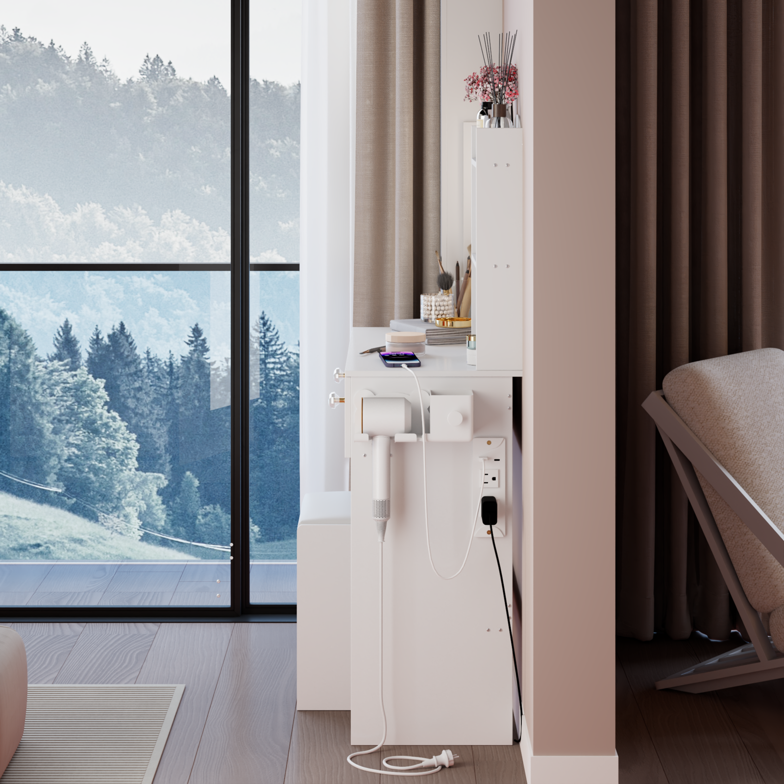 [Built in 2 AC power ports, 1 USB port, and 1 TYPE C fast charging port]: Equipped with a built-in socket, including 2 AC power ports, 1 USB port, and 1 TPYE C fast charging port, it can easily charge your mobile phone or tablet. Two AC power ports allow you to use curling iron and hair dryer simultaneously while you make up.