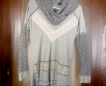 - Vanity Womens Small Sweater Sweatshirt Cowl Wrap Neckline Gray White Lace Dressy