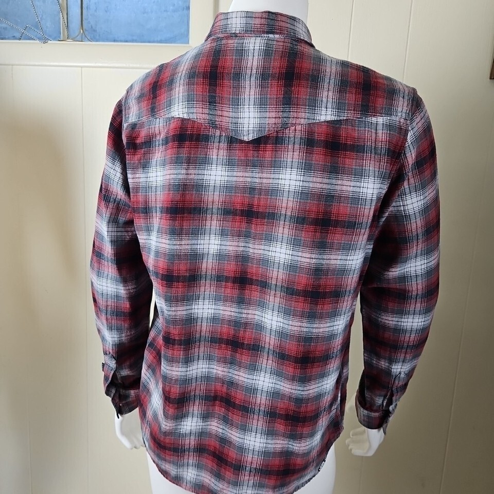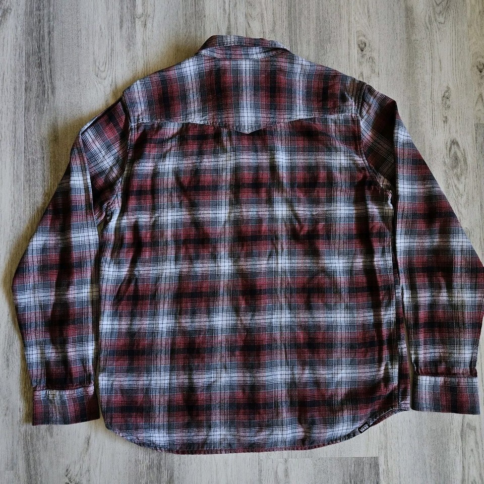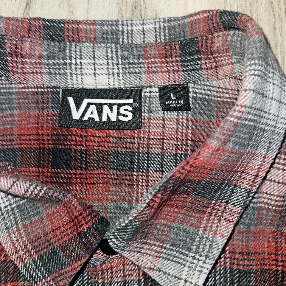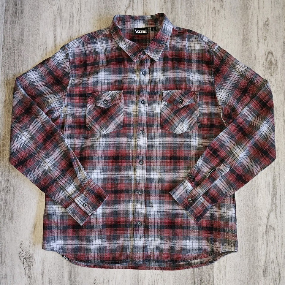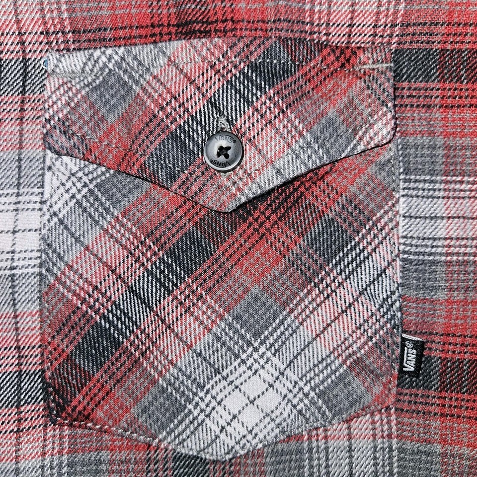 - Vans Flannel Shirt Mens Large Red Gray Shadow Plaid Flap Pocket Long Sleeve