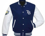 - Varsity Jacket Navy & White Wool and Leather Letterman Style